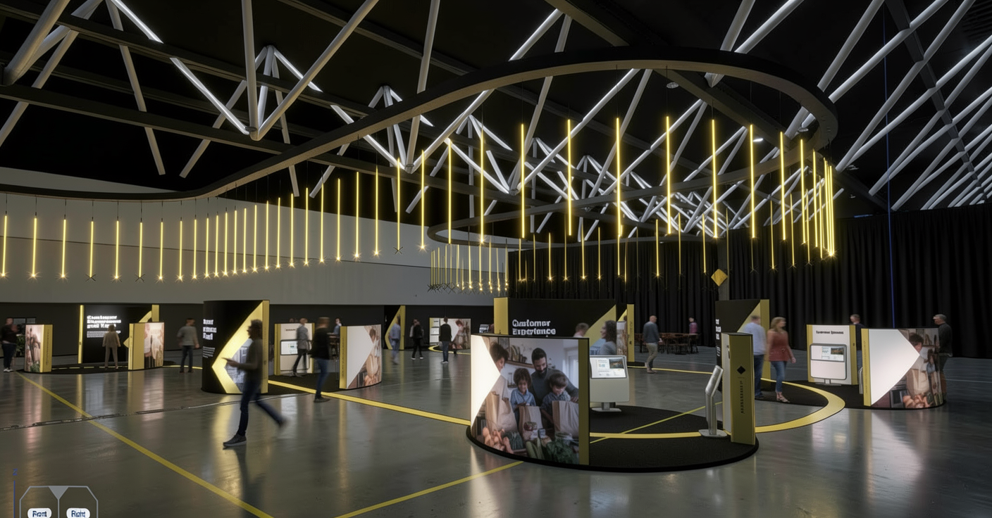 create a scene using the image of a farmhouse the house has white painted board and batten siding with a grey stone base and chimneys the chimney caps are aged copper the windows are painted black the columns and timber elements are stained walnut the roof is black standing seam metal include low landscaping around the porch with landscape lighting the interior should be lit the scene occurs just before dusk in the evening the garage doors are painted black
