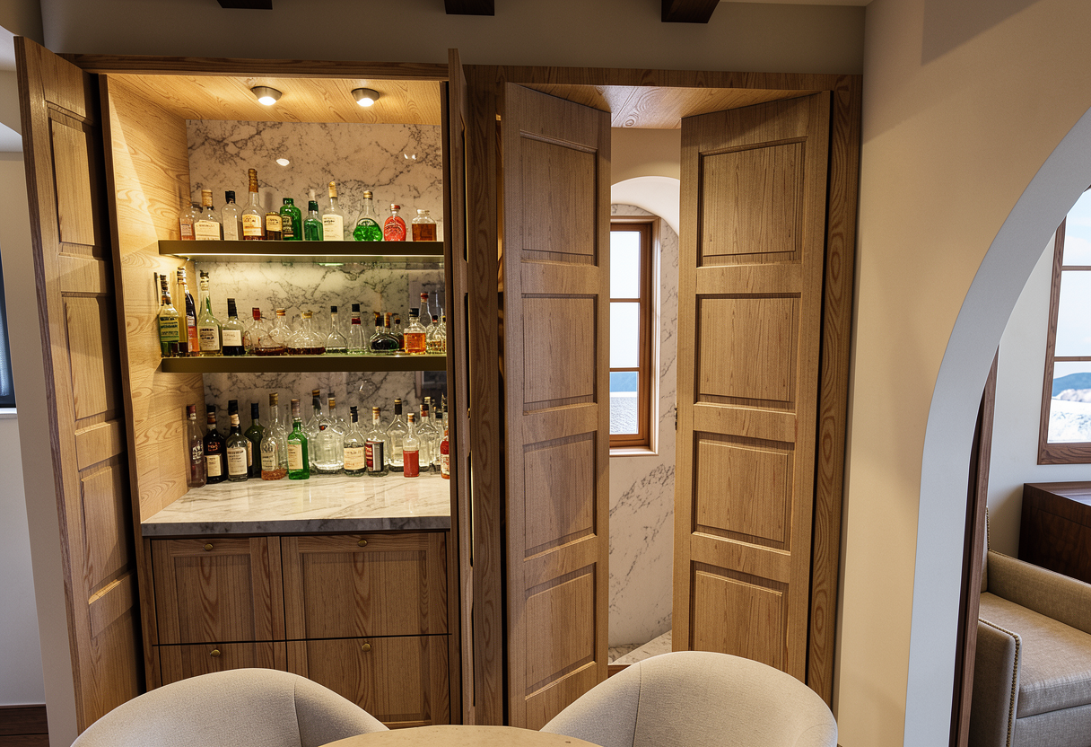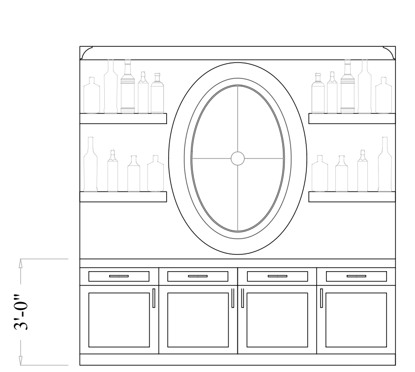 reduce window size in rendering to a more proportional size make open shelving upper cabinetry with glass doors make all hardware knobs instead of pulls architecture