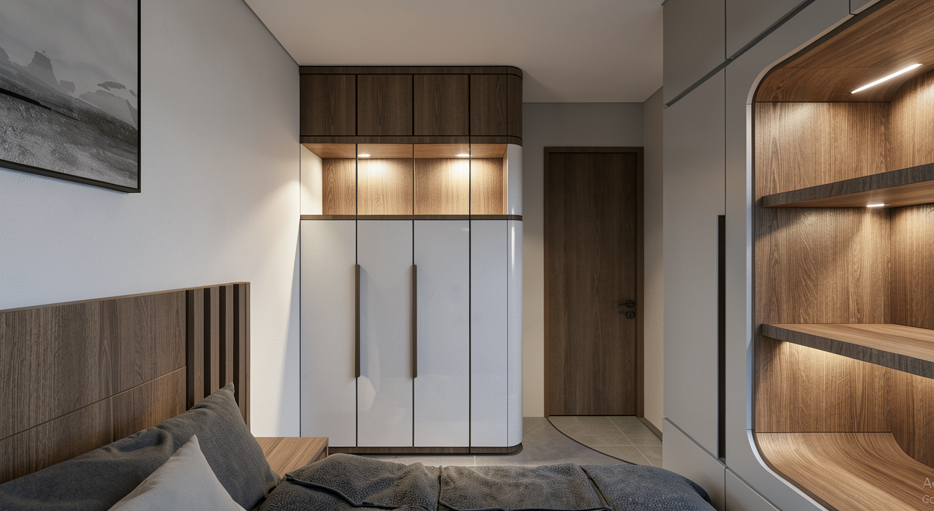 create ultra realistic images without changing any structure shape design or material do not resize the jpeg add indirect lights inside the shelves