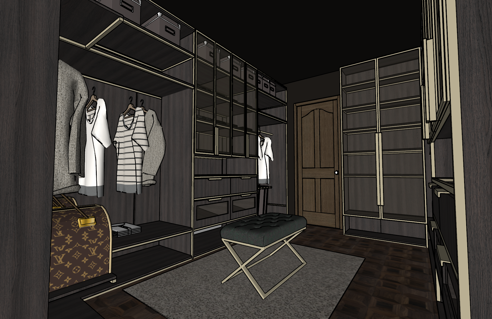 add clothes to the open shelving add ambient light