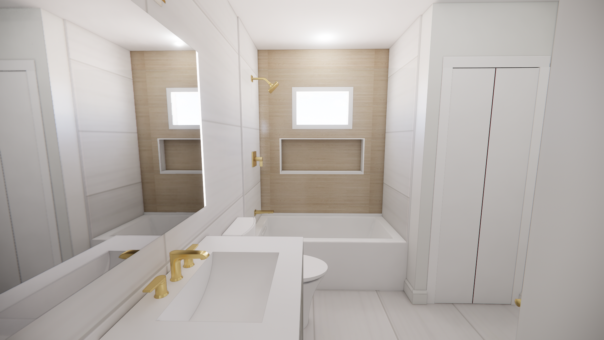 make this look like a photo realistic rendering the shower walls and floor tiles are white with very light offwhite gray horizontal lines walls on right are painted white do not add anything else