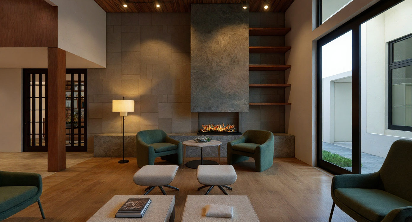 improve this bedroom render while keeping the existing furniture layout enhance the material textures walls fabrics wood and flooring for a more realistic and refined look add subtle modern decorative elements on the nightstands such as lamps books or small sculptures include a few decorative cushions on the sofa that match the room s color palette and incorporate modern wall art to bring more personality and style to the space