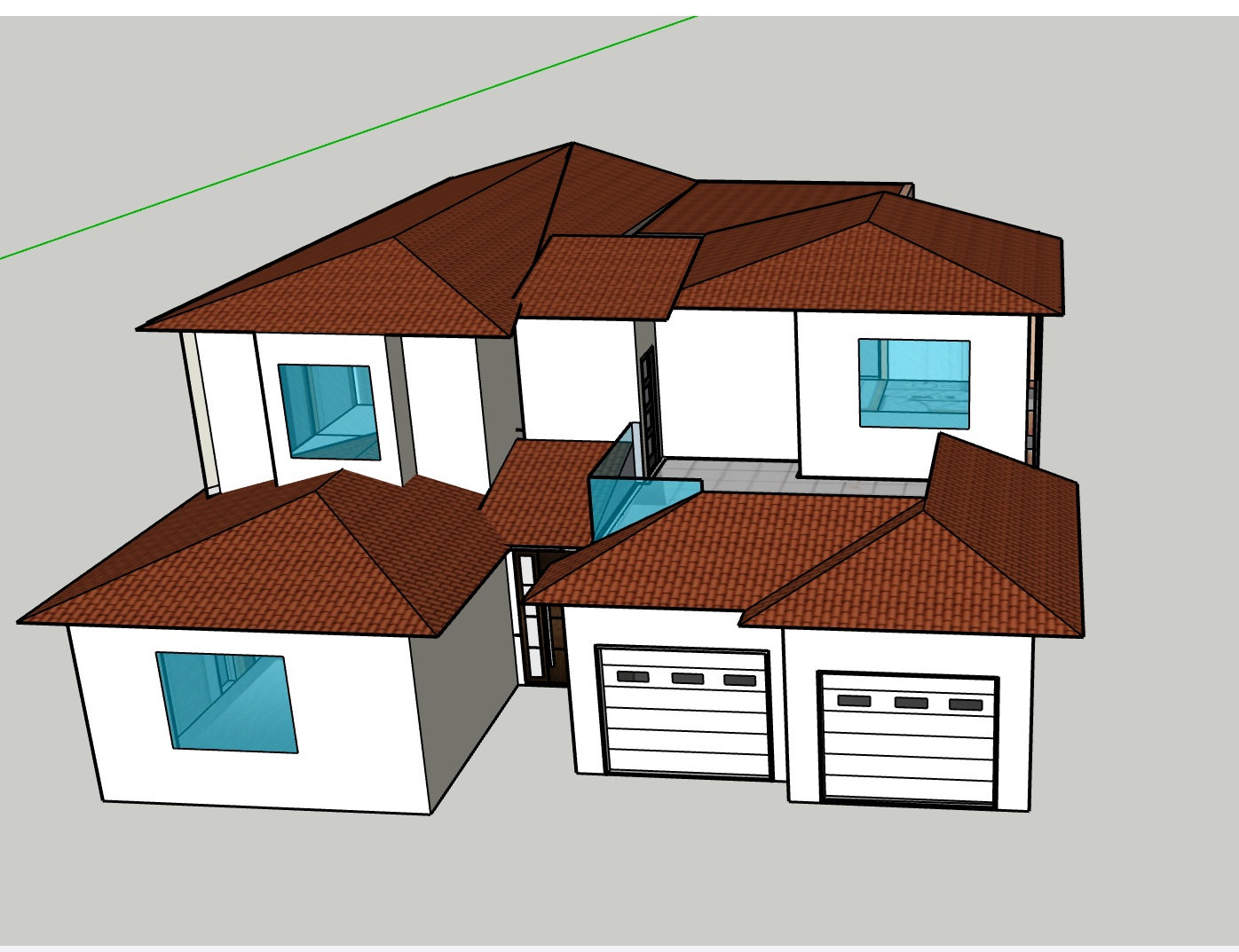 exterior shot create a beautiful render of a modern two story house with a clean minimalist design the walls are a pristine white contrasting elegantly with the sleek dark gray roofs the large windows are framed in a soft blue glass allowing natural light to flood in the front of the house features a textured stone fa ade in a warm beige tone adding an earthy element to the modern structure the double garage doors are crisp white with subtle gray accents the atmosphere is serene and inviting set under a clear blue sky evoking a sense of peace and tranquility architecture
