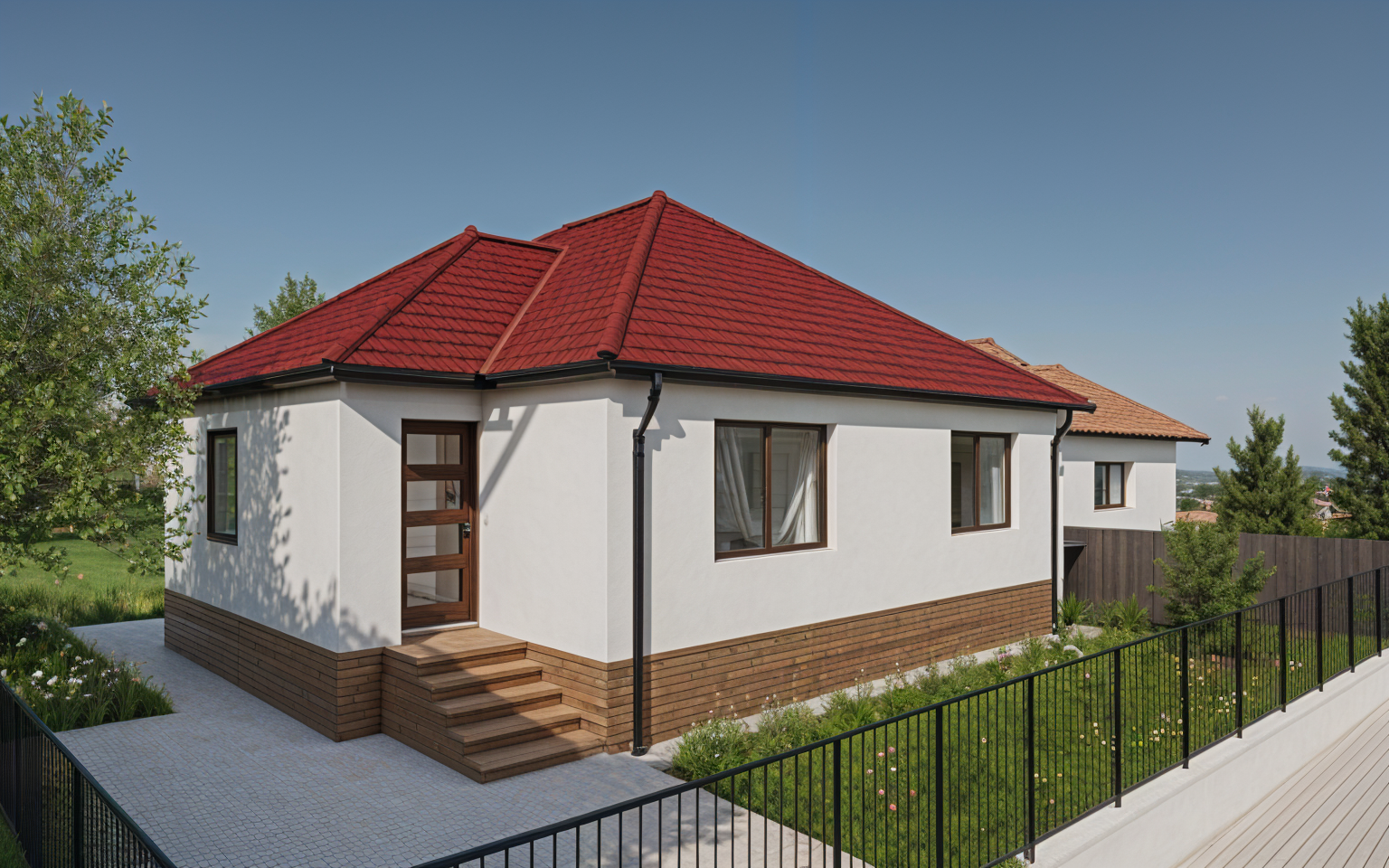 k rek egy fotorealisztikus k pet a k pen ne v ltoztass az p letek t meg t s a ny l sz r kat ne m dos tsd a tet k legyenek nat r t gla sz n ek a t j legyen tavaszi a l bazat maradjon t gla burkolat