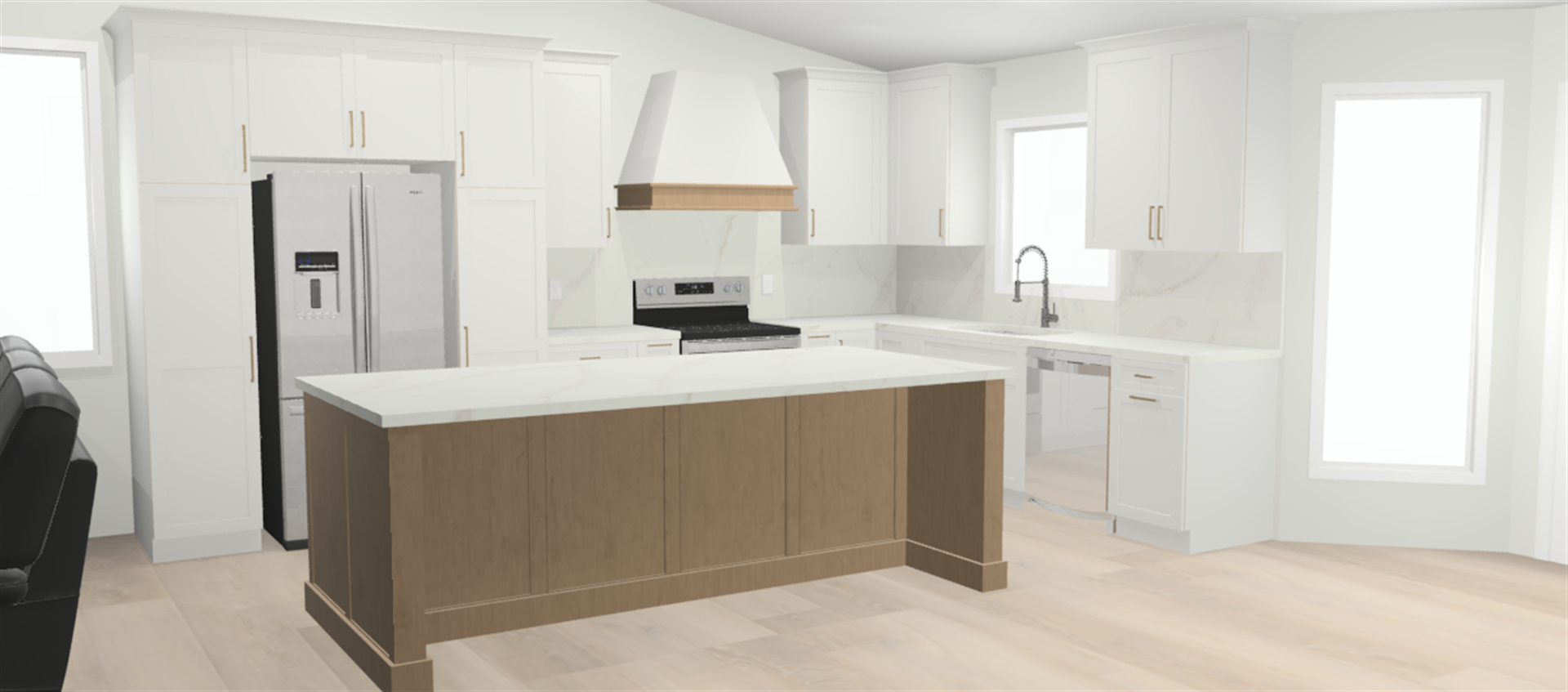 make a realistic rendering from this rendering with the same finishes