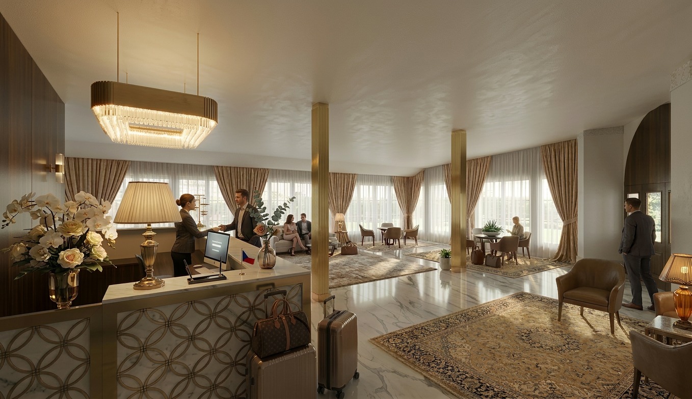 light up interior daylight from front windows change box behind reception from wood to cappuccino clay