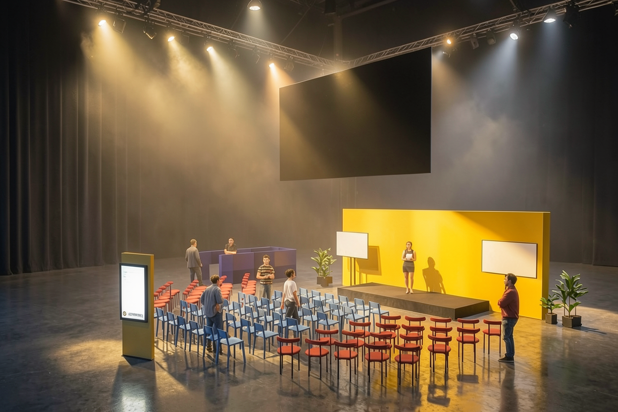 can you render this to show people on the first floor lookign down at the artist studios and visitors on the ground floor internal street you can also put people just around the bridges