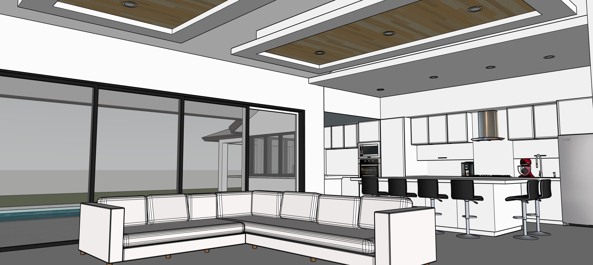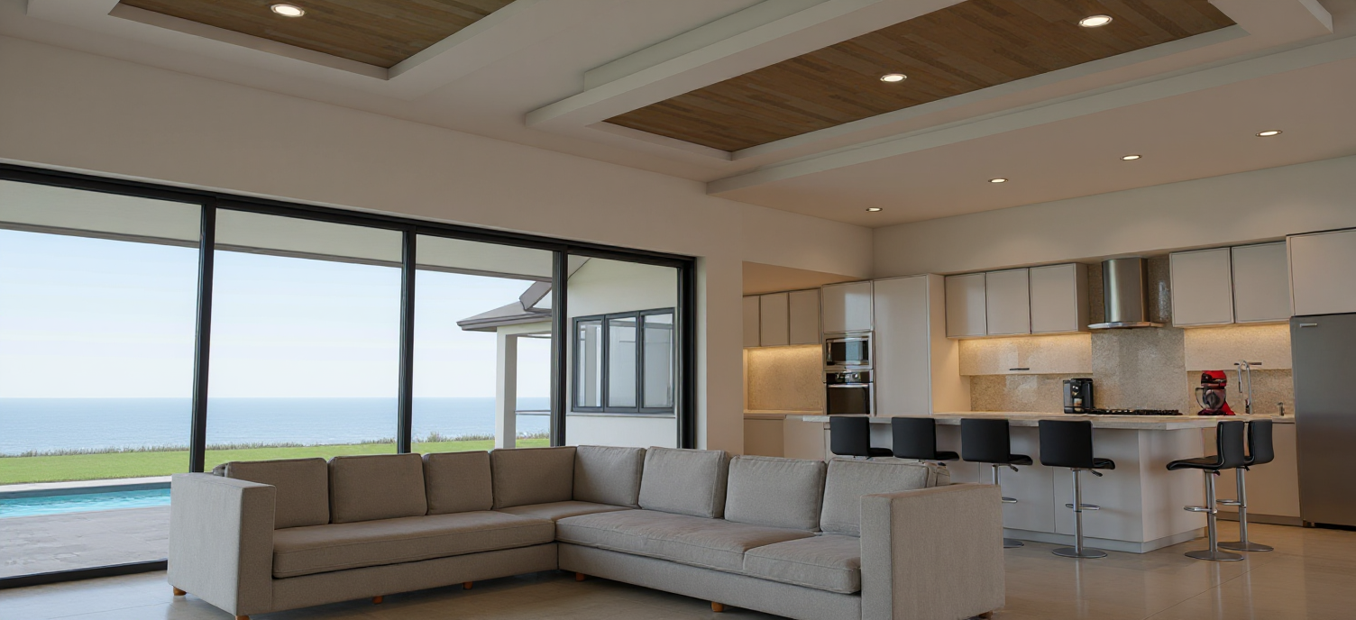 high quality photorealistic rendering for a modern interior house sleek and beautiful with limestone neutral floor finish in large format