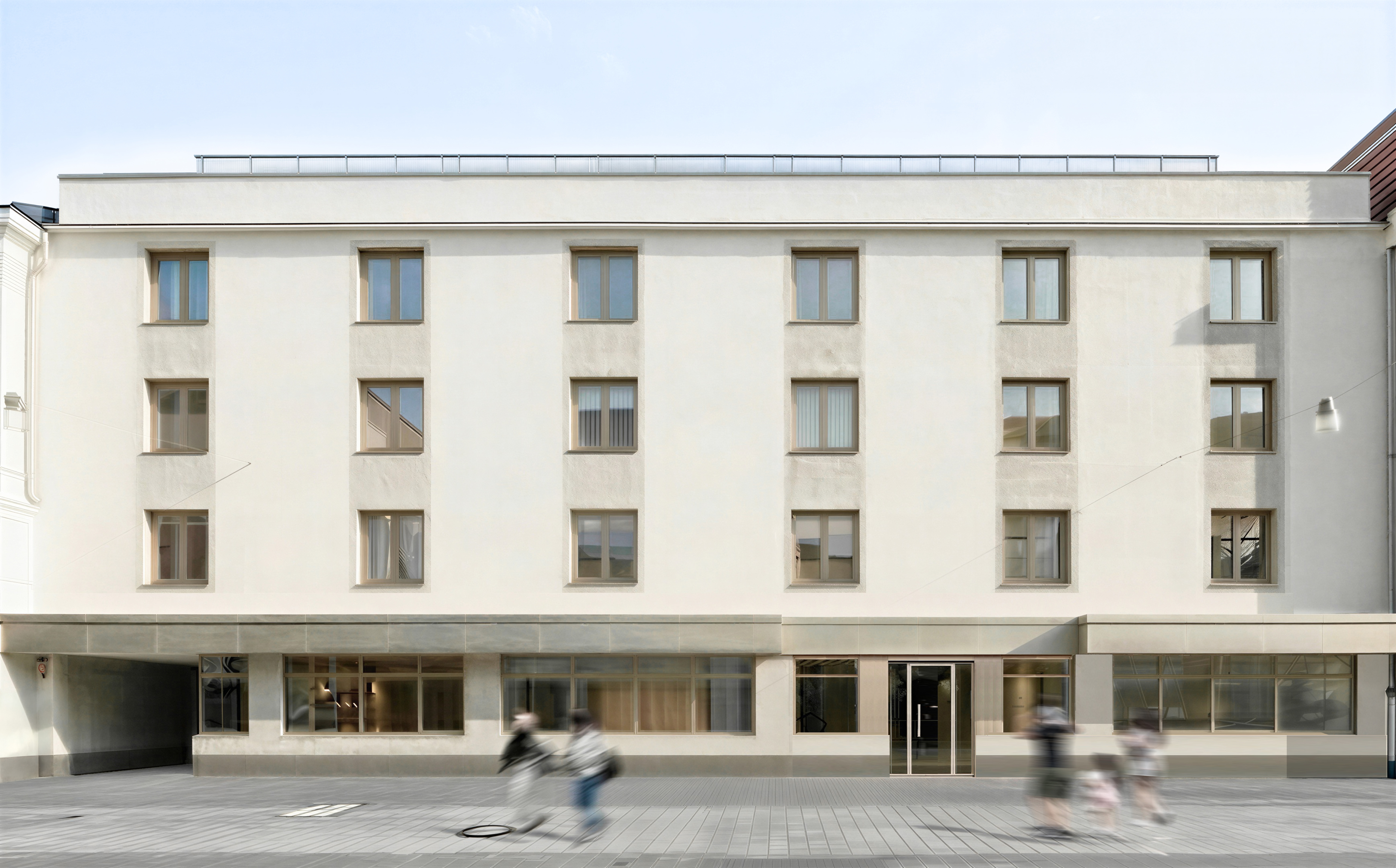 transform this photoshop composite architectural rendering into an ultra photorealistic image with maximum realism strictly preserve all original materials textures and colors exactly as in the source image no reinterpretation no artistic changes ensure a precise 1 1 material match fix all compositing errors remove seams edge artifacts cutout traces perspective inconsistencies lighting mismatches and small facade smudges or glitches clean and unify all surfaces while keeping them physically believable the building should appear newly constructed clean sharp and flawless but still natural no over polishing or artificial plastic look use neutral realistic daylight overcast or soft diffused lighting avoid dramatic lighting golden hour tones or cinematic color grading colors should remain true to life and consistent with real world camera capture apply physically accurate lighting shadows reflections and global illumination ensure realistic glass behavior subtle reflections slight transparency where appropriate and correct material response roughness specularity depth add subtle photographic realism natural contrast slight lens imperfections very minimal realistic depth and fine surface detail without changing the design final result should be indistinguishable from a professional architectural photograph taken with a high end camera