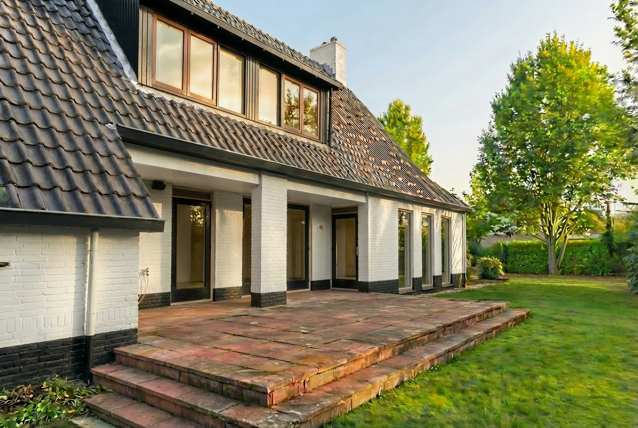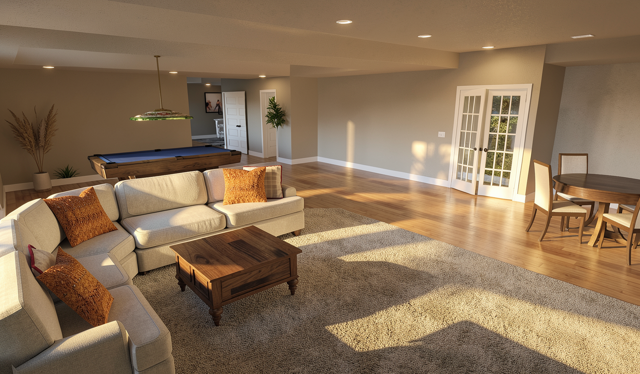 make this render extra real the 3 right windows should show the backyard the left window is part of the main door access to the house and the wall outside it should show the outside wall of the kitchen