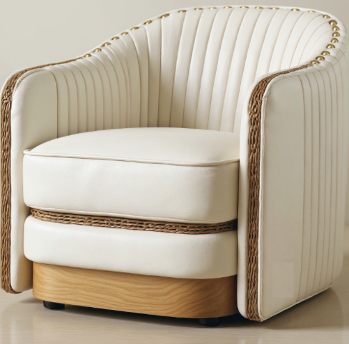 veneer wooden base raffia weaving accent arm