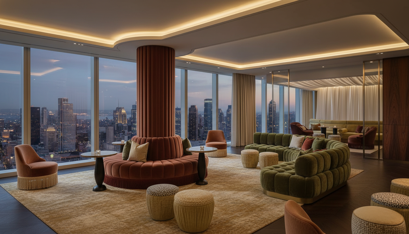 create a highly photorealistic architectural render of this gym interior visualization using the provided reference image as the exact base preserve all colors materials such as wooden panels concrete textures glass surfaces thick fabric rug on the floor with realistic fibers and subtle wear metal equipment frames and stone elements material structures wall geometries object shapes positions and overall layout precisely without any changes do not alter volumes proportions or arrangements ensure the large dark mirror prominently reflects the fitness equipment including the bench press aweczka stationary bike rowerek and treadmill bie nia with accurate perspective and lighting enhance realism with ultra detailed textures subtle surface imperfections and lifelike reflections on glossy surfaces including the mirror implement realistic lighting soft natural daylight filtering through large panoramic windows and glass doors from the outside pool area and surrounding pine trees mountains creating dynamic soft shadows god rays piercing through vertical slats warm ambient ceiling spotlights with realistic light falloff and subtle lens flares and bounced indirect light highlighting wood grains rug texture and floor details for depth and immersion render in high resolution photorealism as if captured by a professional architectural canon eos r5 camera with 50mm lens f 4 aperture emphasizing sharp details natural depth of field and atmospheric perspective architecture interior gym photorealistic