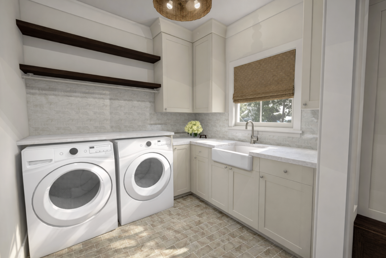 create a photorealistic rendering of this living room space keep the architecture colors and build the same do not add any accessories to the space lighting should be as if daylight entering through windows with sheer diffusion subtle falloff