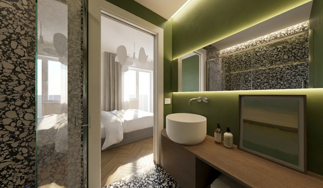 make a photorealisitc interior elvation from this 3d screenshot