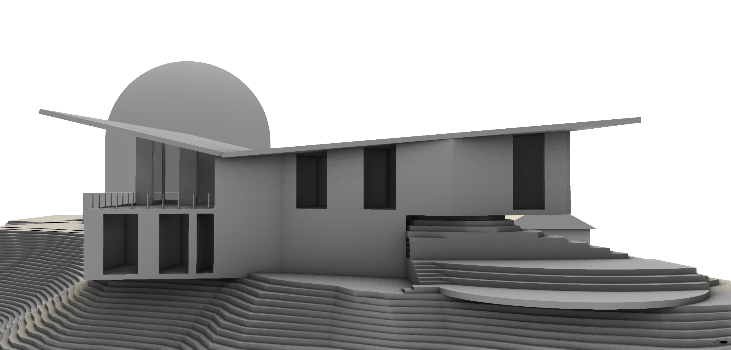 architectural watercolor rendering of a small contemporary research station perched on a rocky cliff structure made of warm wood black steel and glass precise and realistic architectural detailing cantilevered over stone terrain supported by steel beams surrounded by mountain pines and mist below rendered with crisp building geometry and realistic materials background and edges dissolve into loose watercolor washes and white paper edges not full bleed with soft unfinished fade around the image visible pencil and ink linework with light technical annotations artistic yet grounded balance of precision and painterly abstraction calm morning light concept architectural visualization style