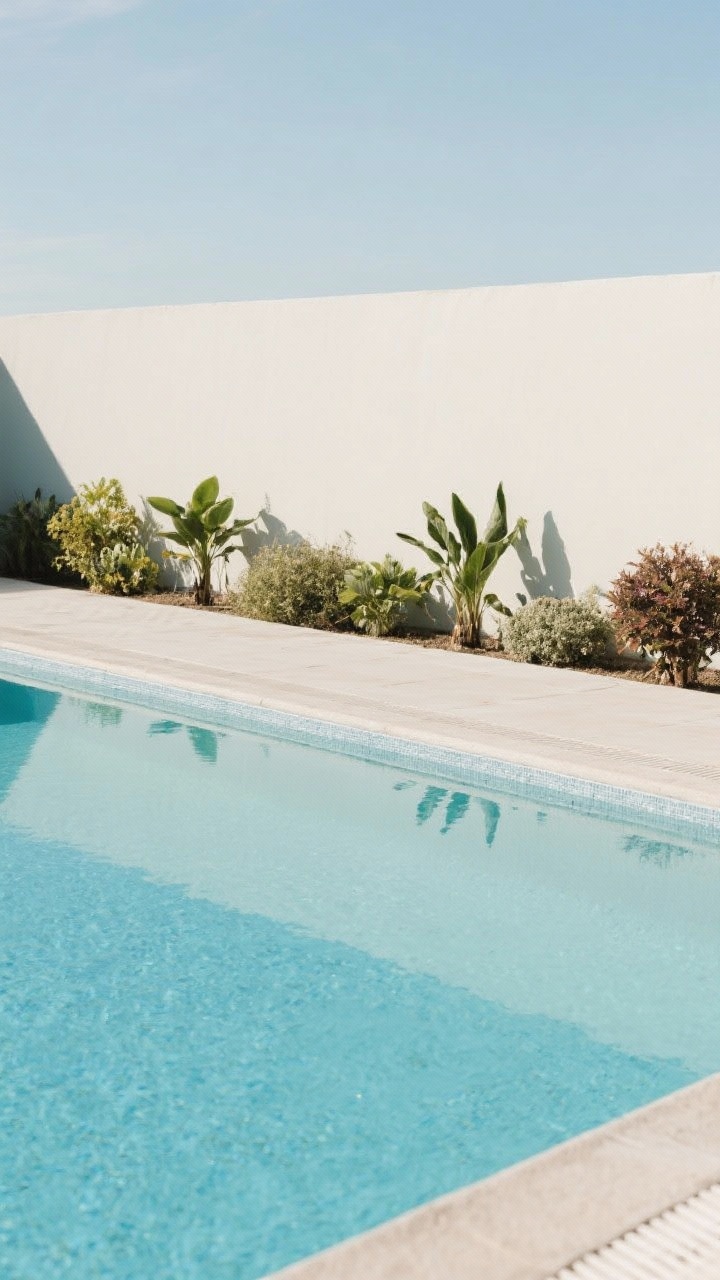 aromatic pool garden with jasmine lavender basil scented geraniums soft lighting mediterranean desert mix calm luxury atmosphere