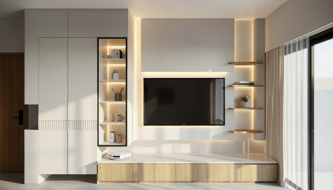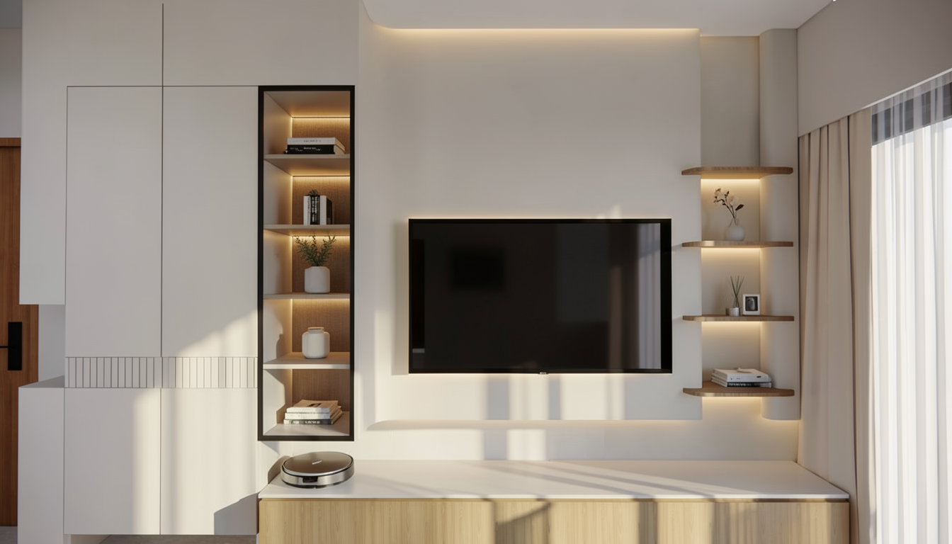 create ultra realistic images without changing any structure shape design or material do not resize the jpeg do not change the color material use warm offwhite to the wall paint