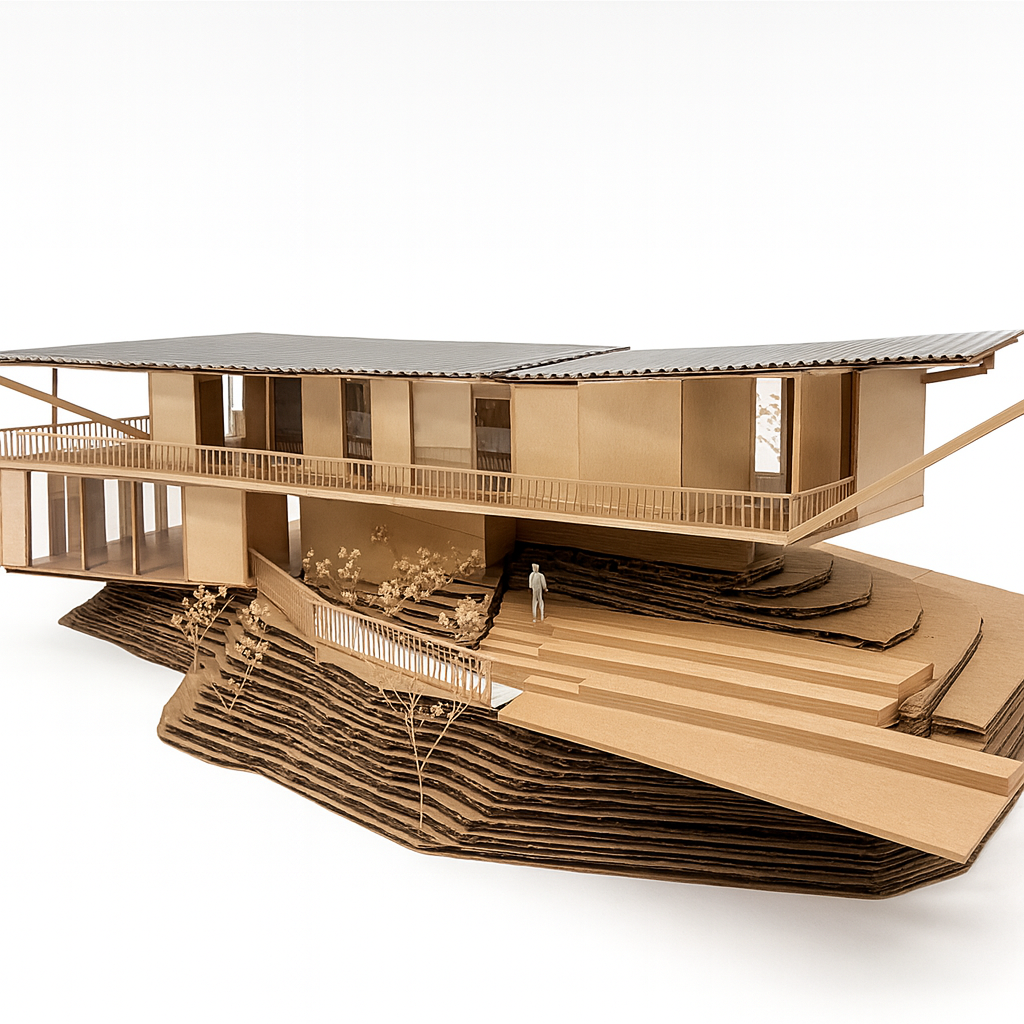 setting is on a mountain with a lot of trees and an open view to the sky smoothen the topography and exagerate the cliff add trees
