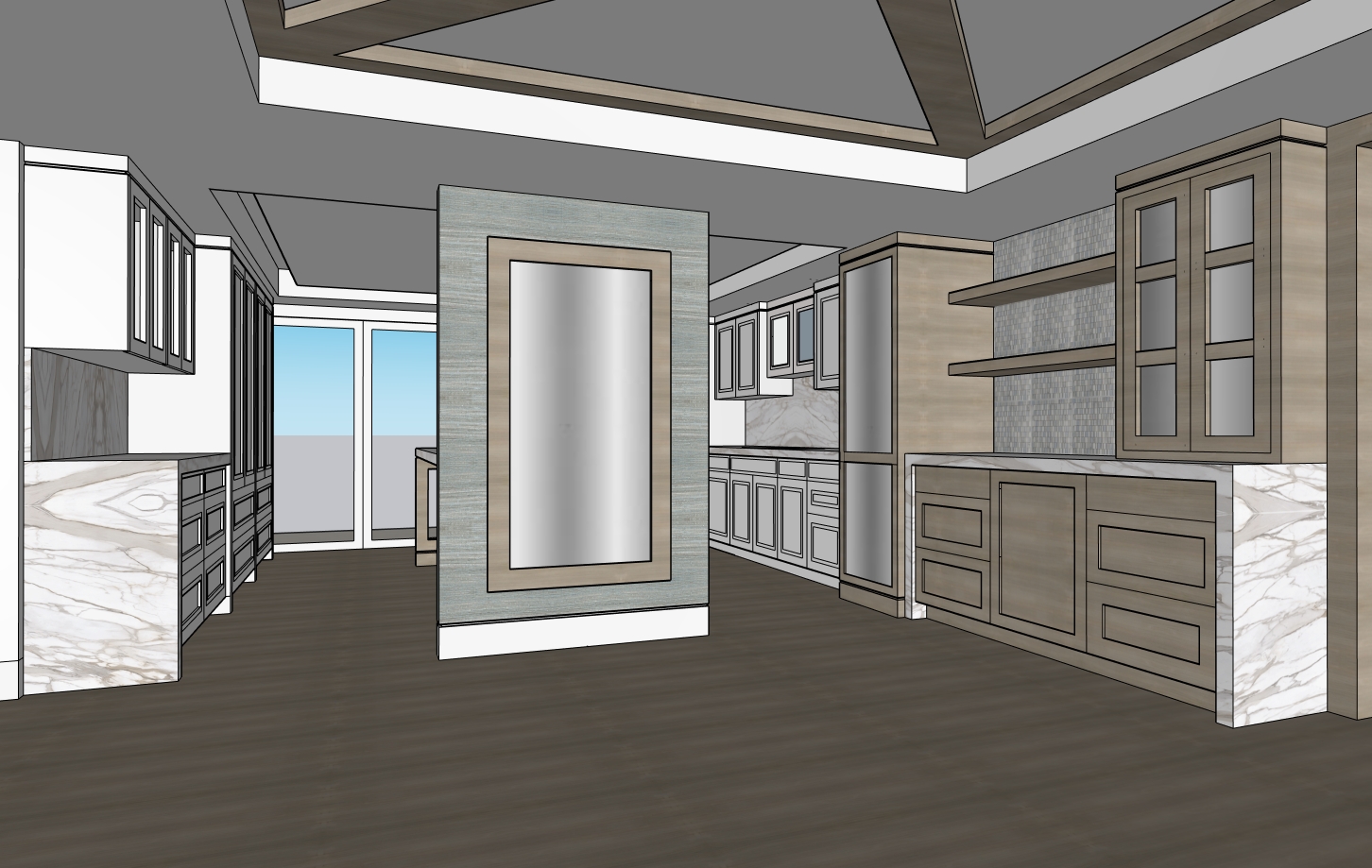 transform the provided elevation into a hyper realistic interior photograph that is indistinguishable from a real professionally shot interior design photograph this must read as a real space captured by a camera not a rendering not a visualization not architectural cg not concept art and not an illustration geometry lock non negotiable preserve the exact original geometry layout proportions ceiling details wall depths panel divisions openings doors cabinetry locations millwork dimensions built ins and circulation paths with zero architectural changes nothing may move scale simplify or be reinterpreted geometry must remain absolutely unchanged camera derivation critical derive the camera position height angle and framing strictly from the uploaded elevation eye level interior photography centered or naturally balanced composition 24 35mm interior lens feel no dramatic angles no stylized framing do not reuse or approximate camera framing from any previous image remove all drawing artifacts completely remove all linework cad edges drafting outlines diagrammatic shapes sketch artifacts nothing may appear outlined flat schematic or illustrative the elevation must be visually reinterpreted as a finished real interior photograph material realism rules wood if present smooth solid plank material extremely subtle restrained grain matte or soft satin finish only no graphic patterns no decorative striping no visual noise wood must absorb light gently never glossy or sharp fabric upholstery if present soft compression subtle seams gentle shadowing natural fabric texture no flat color blocks stone slabs if present light natural veining soft organic variation low contrast no symmetry no bold or busy patterns stone must feel heavy and grounded walls fine surface texture slight tonal variation never flat paint edge construction realism all edges corners joints and transitions must be softly broken and physically realistic no razor sharp corners no cgi perfect edges slight construction tolerances only everything must read as fabricated installed and dimensional lighting photographic behavior lighting must behave like real high end interior photography natural daylight only unless otherwise specified realistic light bounce gentle shadow falloff uneven exposure distribution subtle brightness variation across surfaces avoid studio lighting uniform illumination over clean exposure global illumination look slight softness is preferred over sharpness camera image imperfections very important introduce subtle photographic characteristics gentle lens softness micro exposure variation natural contrast roll off mild atmospheric depth primary plane sharp background slightly softer the image must feel captured not generated absolute constraints no creative interpretation no stylization no exaggeration no added or removed elements any deviation from the original elevation geometry or intent is unacceptable negative prompt always include architectural rendering 3d visualization cgi unreal engine octane vray sketchup look flat textures graphic lines outlined edges over sharpened studio lighting concept art illustration ai look plastic materials glossy wood high contrast grain perfect symmetry do not change ceiling design keep as it is in the picture