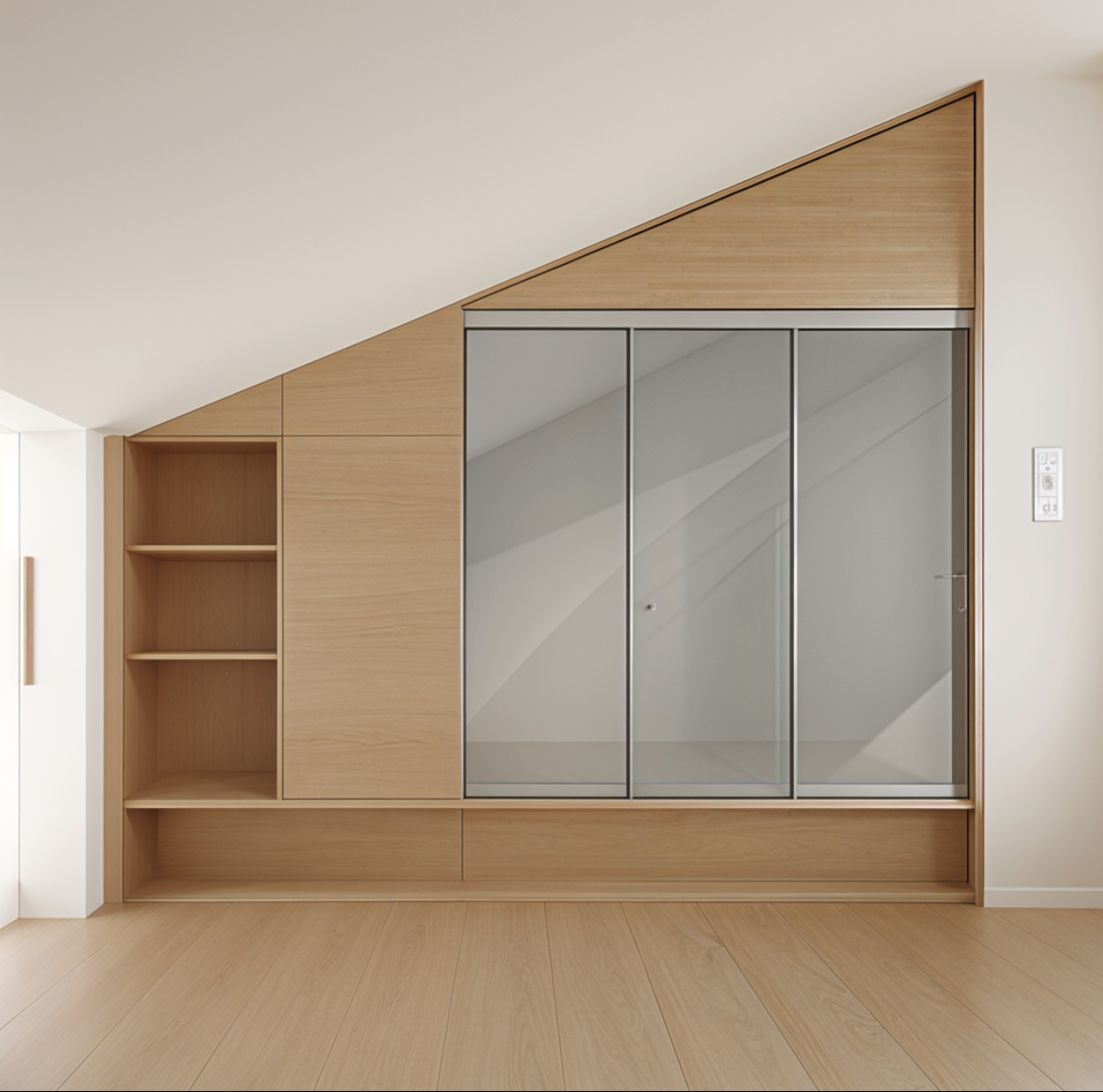 interior shot the dressing should be light wood with where the glass is now should be open closet space