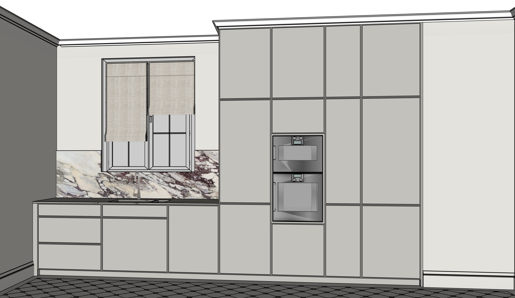 the apartment is on the 3rd floor of a parisian building the walls are lightly plastered in light greige the stone is calacatta viola like this one https www italgranitigroup com fr collections italstone italstone calacatta viola the cabinets are in ressource peinture le frisson like this https ressource peintures com produits peintures les collections ressource le frisson flocon tremblotant r033 the upper wooden shelves and the stools are in walnut the floor in in black and light beige cabochon tiles like these https www ligerio fr p dallage a cabochons en pierre du nivernais attribute pa epaisseur 1 5 cm attribute pa finition finition brossee attribute pa dimensions 30 cm x 30 cm gad source 1 gad campaignid 22580861264 gbraid 0aaaaacovxwoqoy2u daf1vivokbpblzvq gclid cjwkcajwwjzpbhbreiwajfhrntcp0bnzlynykaejdbbbwtwgj mcma0bvnsgm0xike6zgrx9gzfjirocdzqqavd bwe the look and feel should be a little more moody and textured