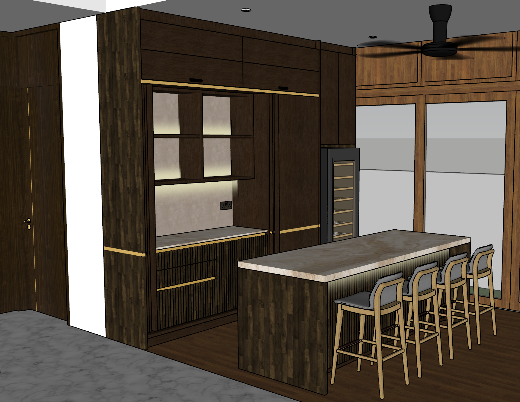 there s only open shelveson top the counter no glass door panel