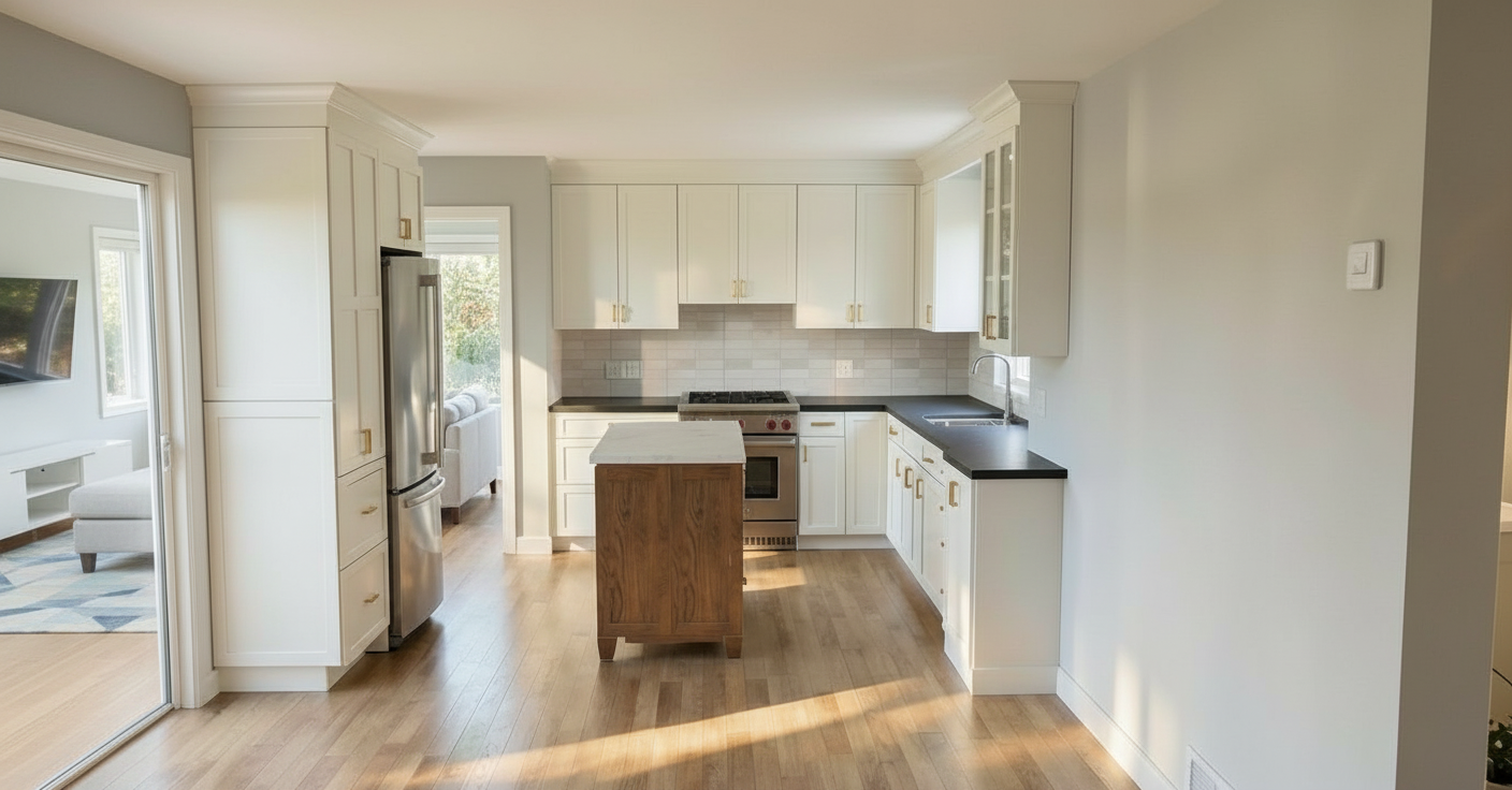 go back to the original and chagne only the countertops to be light white counters with brown veining