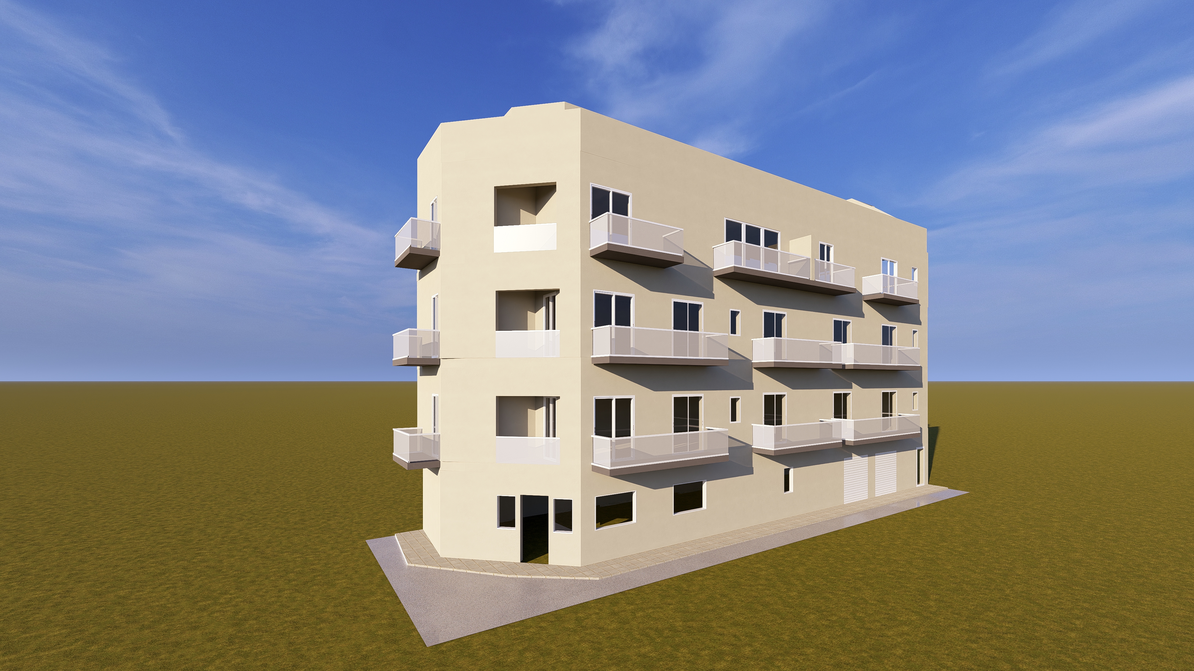 create a photorealstix render of this iamage make ity in a corner road and add buildings next to it maltese style
