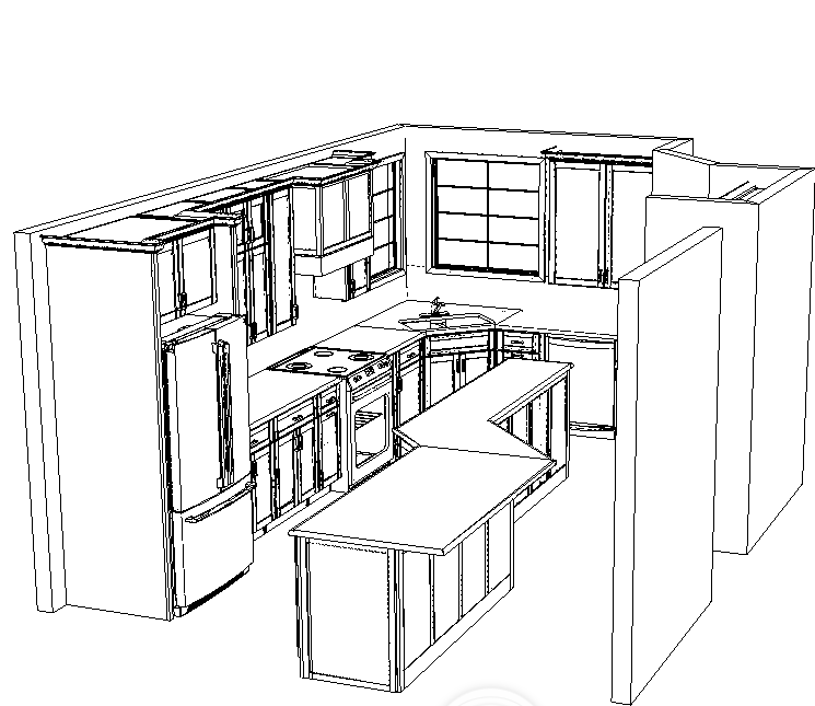 modern kitchen with warm floors white perimeter cabinets warm island cabinets a large island that starts narrow 18 deep and then goes to 24 with an overhang for bar stools