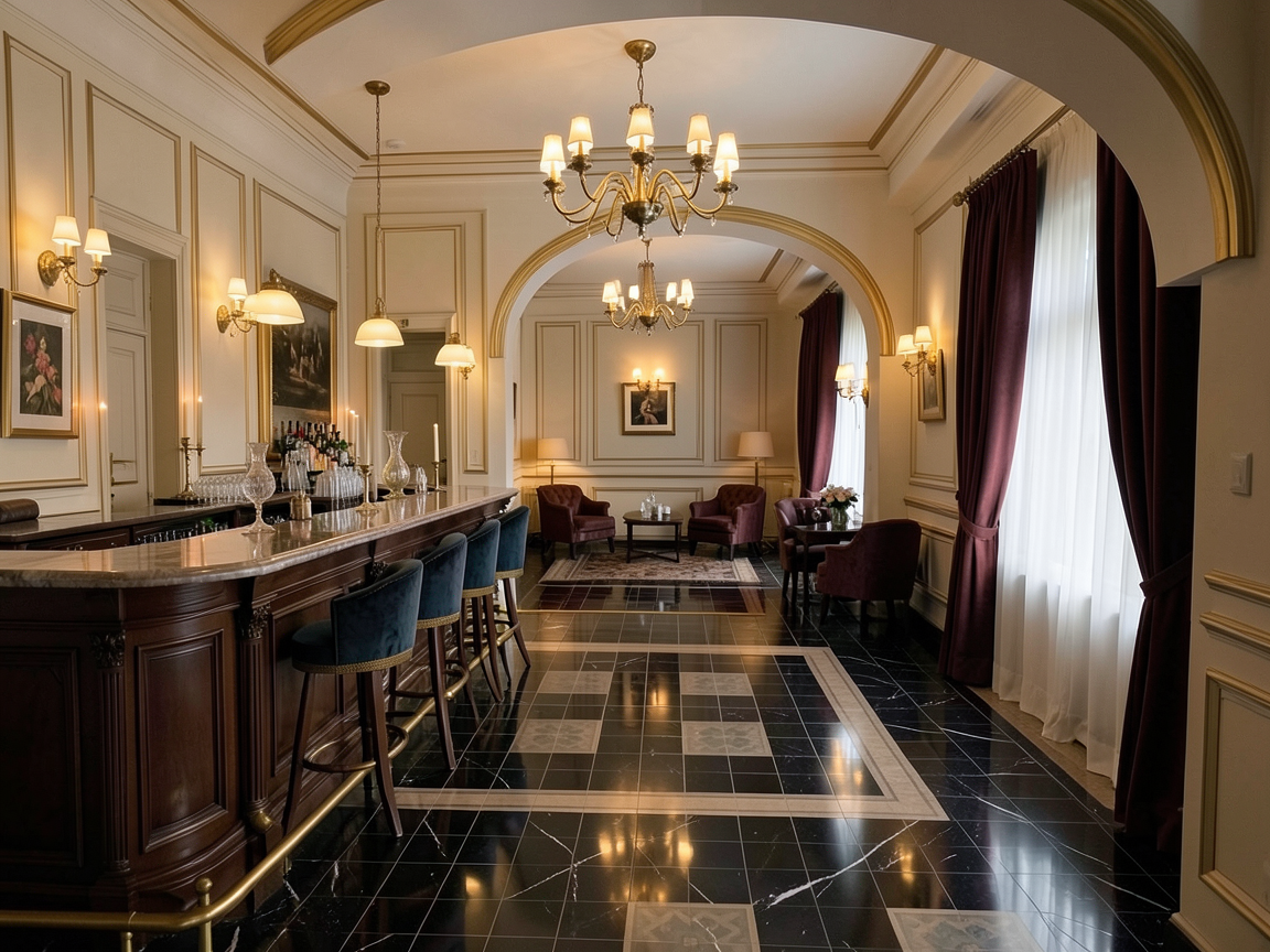 this is a modern interior in the rendering with natural light make it look like it was made at noon don t change anything from the design just replace the materials and objects with more realistic and high quality ones replace the wood material that was used with the same wood material as in the photo but with high quality and few lines make it softer we have laminate flooring make it have a color close to the wood the glass on the right side on the wall at the bottom of the photo behind the glass we have a fireplace for preparing pizzas on the left side we have a wall with decorative living greenery make it look real don t change anything there replace the chairs with the same ones but with high quality and real ones the ceiling lights are made of rattan material make it real while in the middle of the booth we have lights with a light cream color make it real make the tree real and a beautiful tree but let it have the same length replace the curtains with real curtains with a light cream color let the render look real and with high quality let it look like the previous render the lighting and the colors do not change anything in the design