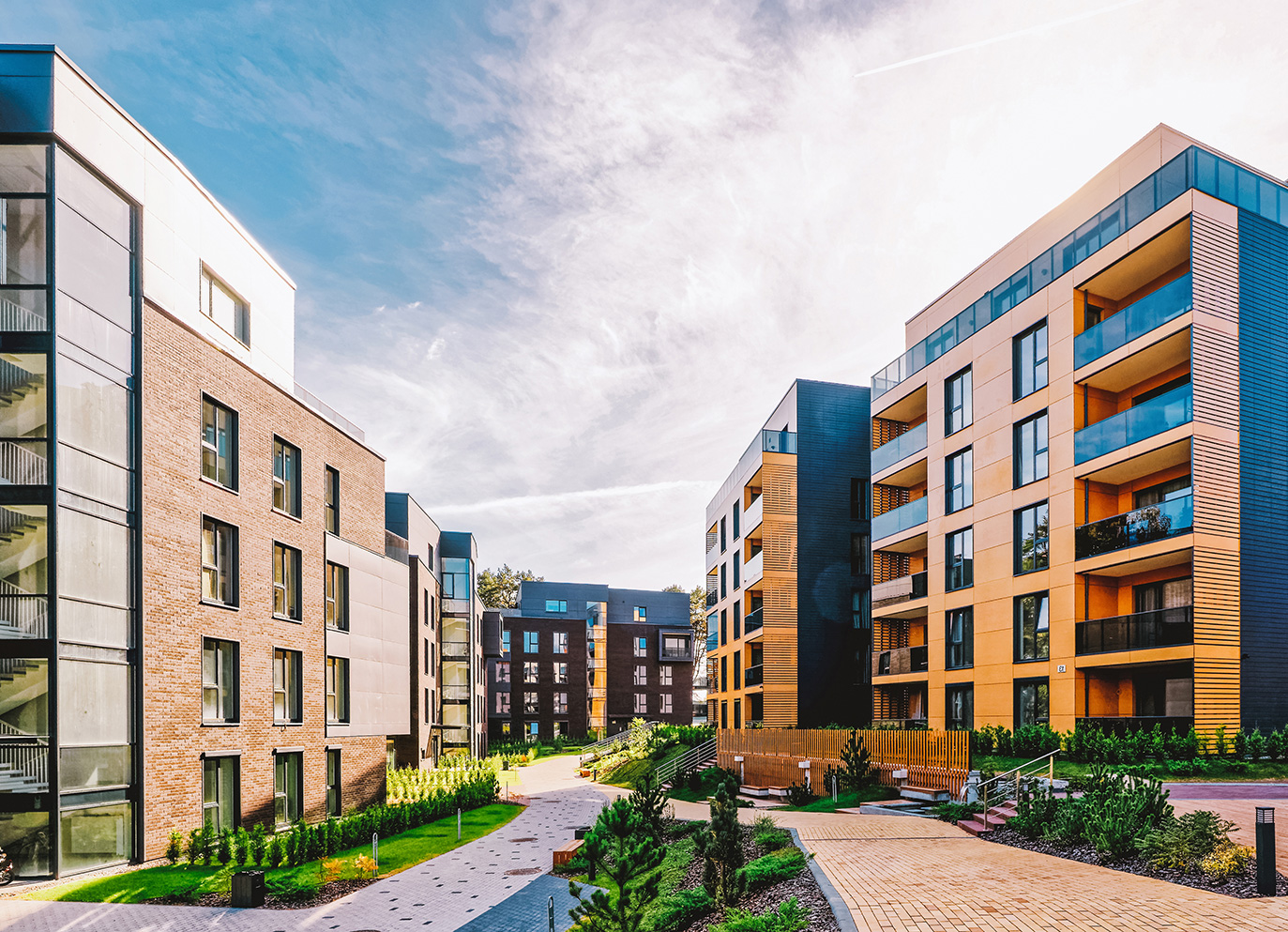 create an apartment community adding more greenery people and gardens also add people walking and on bikes add streetlights make buildings multiuse with shops on the main floor