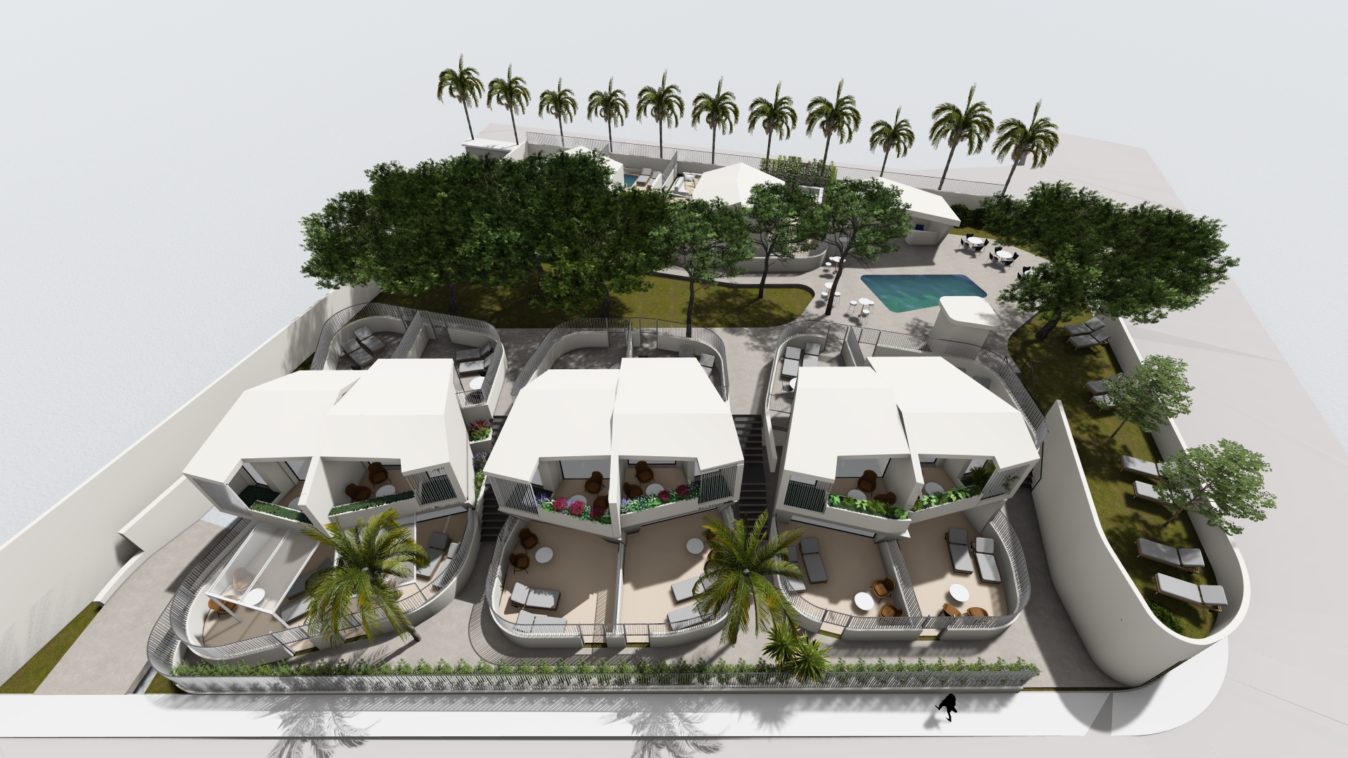 transform the image into a premium luxury hotel atmosphere without modifying the composition camera angle architecture furniture placement terrace layout window dimensions or proportions keep all existing geometry and layout exactly the same upgrade all materials