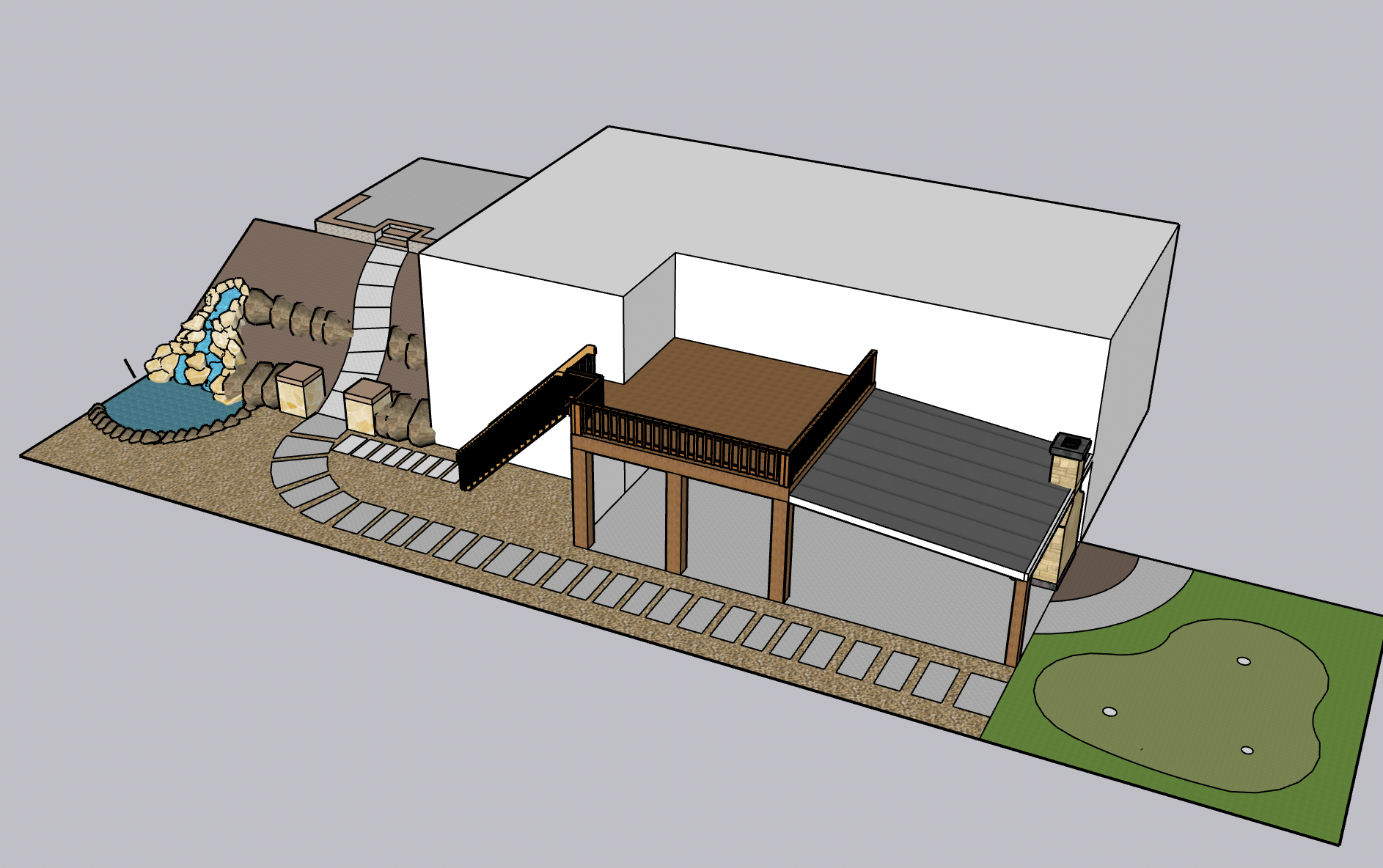 a manicured lawn layered flower beds low maintenance shrubs native plants stone pathway leading to the entrance