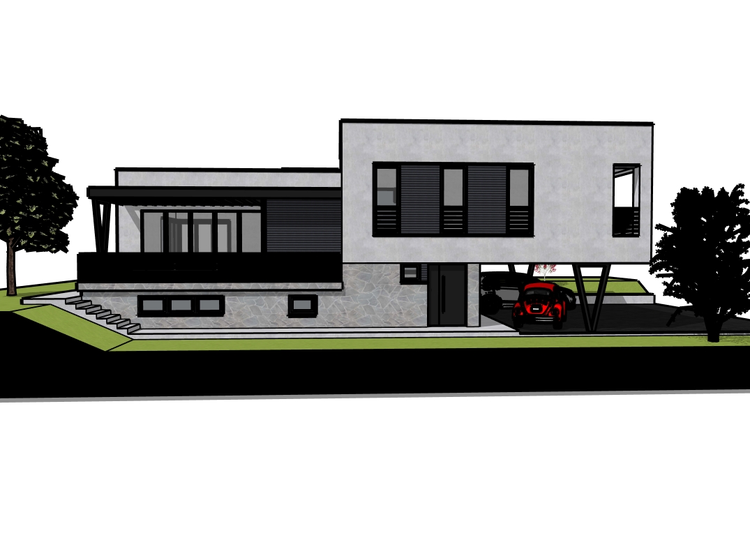 convert this sketchup screenshot into a photorealistic architectural render preserving the geometry nad camera view with natural lighting and high end v ray visualization quality