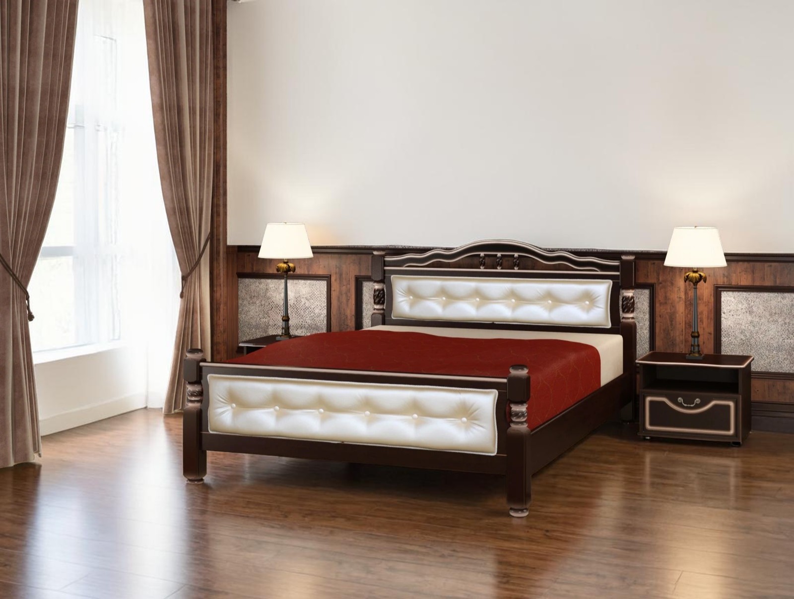 satin like leather white part on the bed
