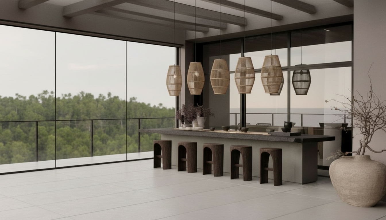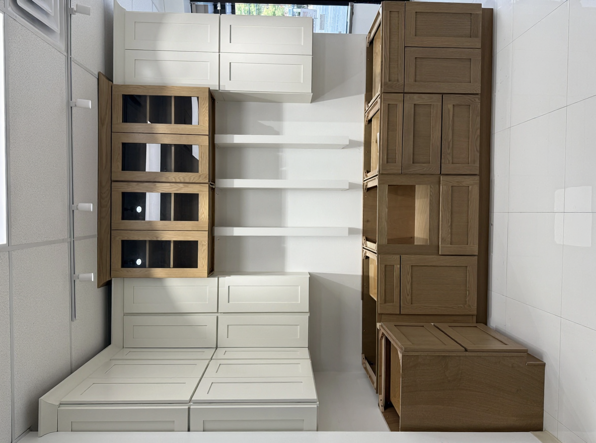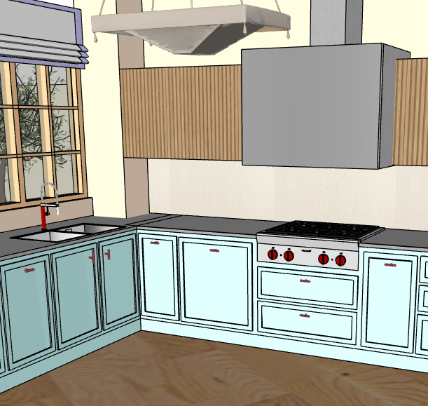 make the bottom cabinets of a lighter cold blue shade very pale and make counter top stainless steel