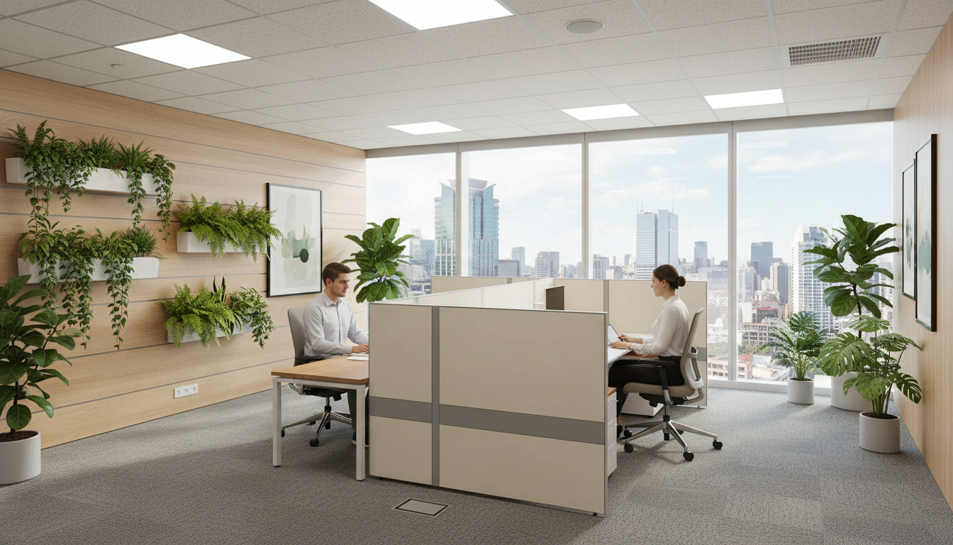 this is the kitchen of an elegant modernist house that we want to renovate the floor is beige burgundy stone the window frames are anthracite black and to the left of the window there s a glass fronted cabinet the cupboards are finished in white we want to create a bright natural atmosphere with plenty of light adding a touch of life through the window to the left you can see a large garden and beyond it you can glimpse the living room