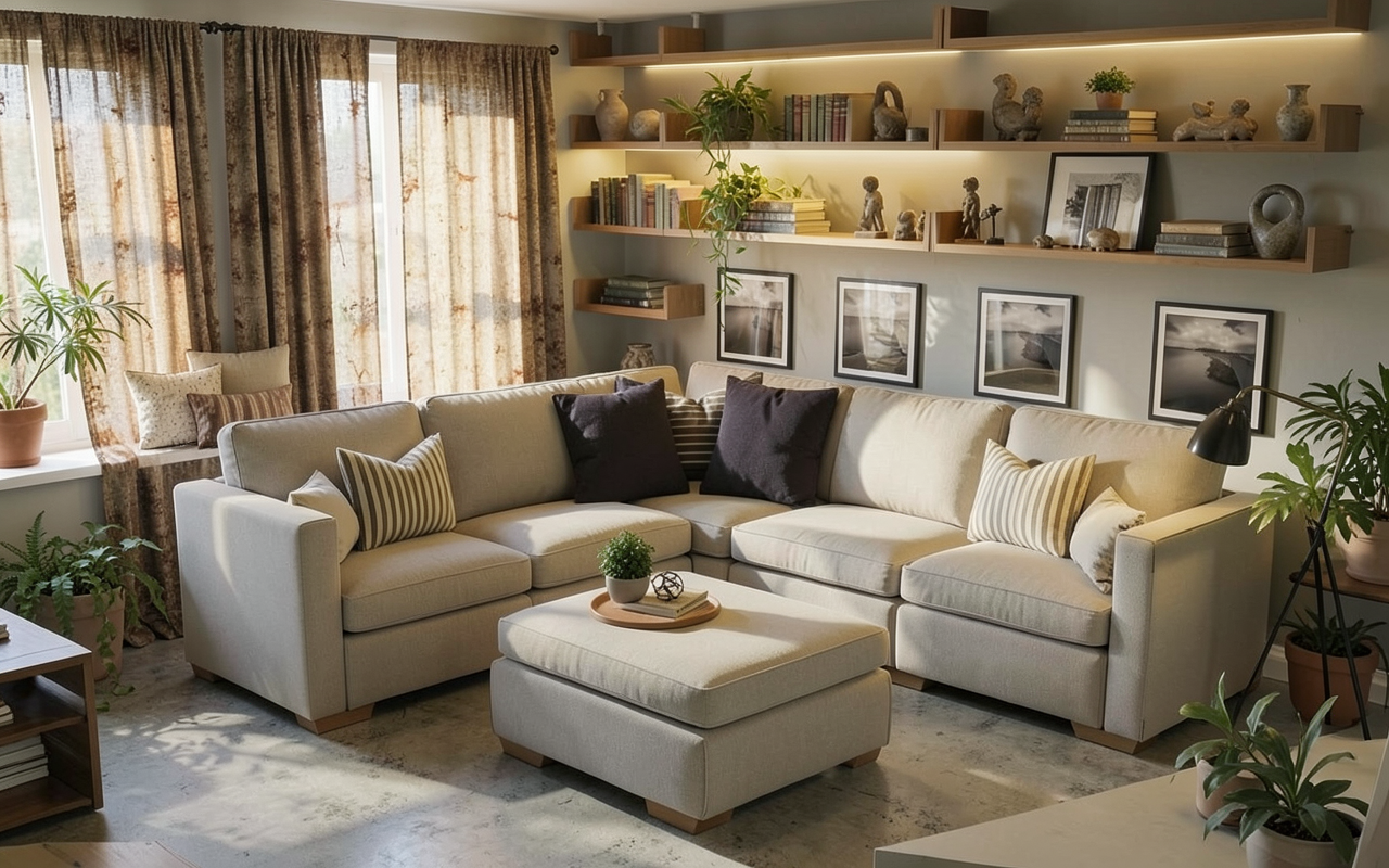 classic sofa add deocoration and plants