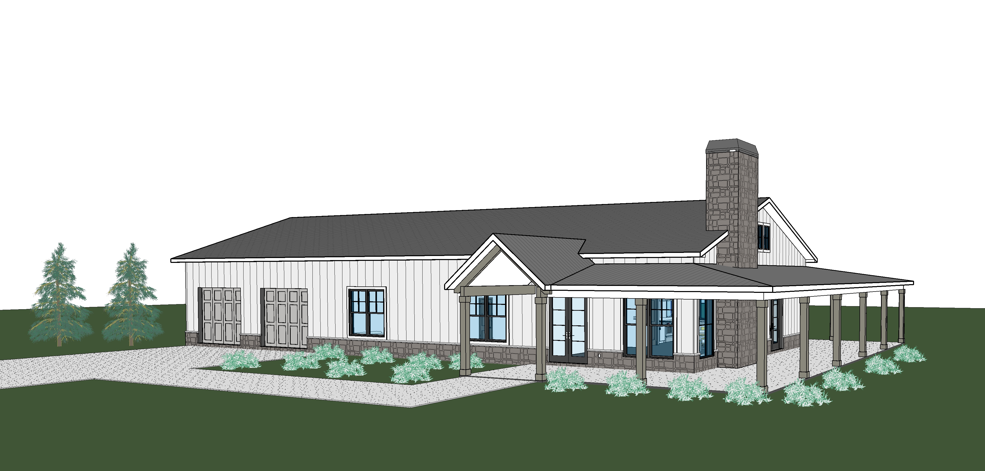 barndominium with vibrant landscaping clear blue sky with few clouds