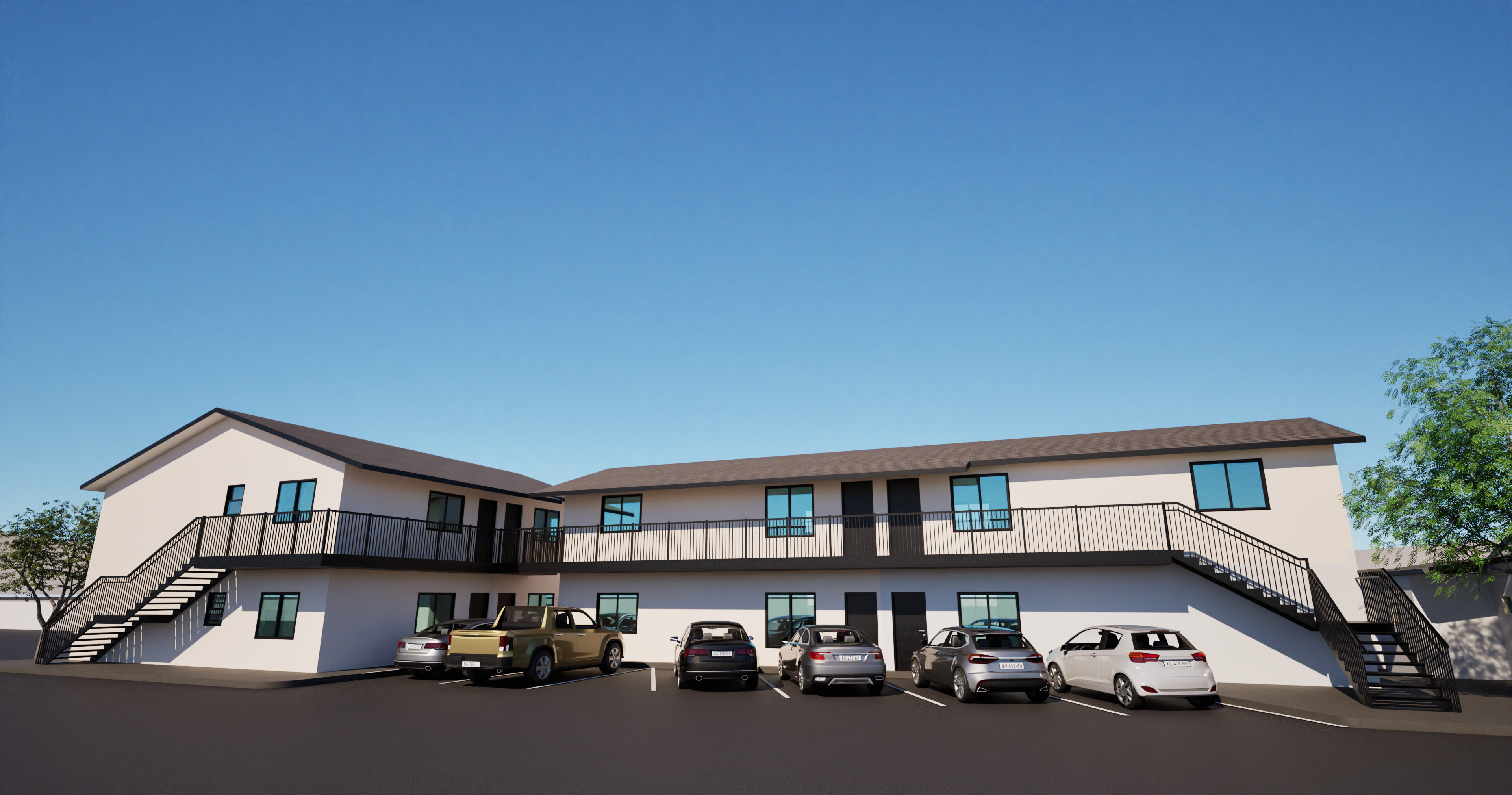 textured white plaster walls cypress trees in the back and oak trees city scape in the background in sunny california weather