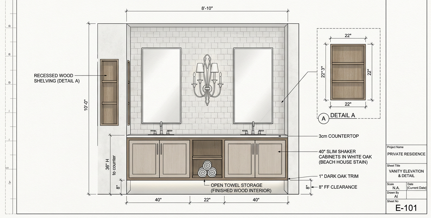 help me make this bathroom look more modern change the tile to a herringbone lighter tile a creamy black mirrors and black brizio modern faucets the sconce should be modern too