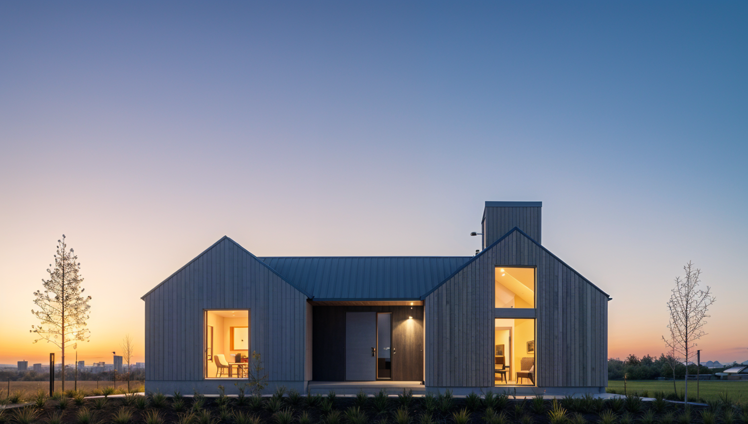contemporary exterior shot country style home vertical cladding gable ends architecture