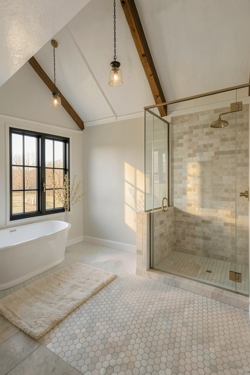 modern office building with brushed metal accent columns parking lot with curbs and landscaping