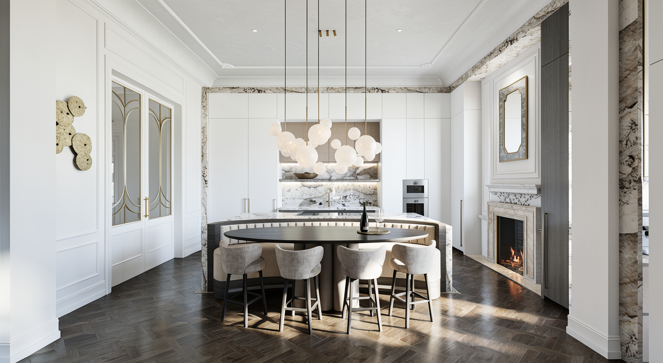 led strip light in the niches and behind mirror above vanity with sport lights in the ceiling