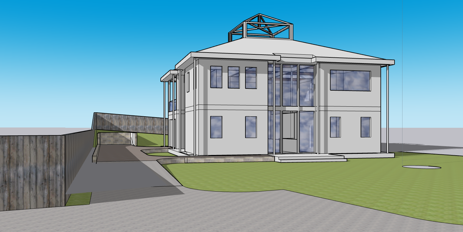 two story four square style home epdm exterior slate roof casement window large walnut tree in front yard and wild grass front yard mid day march northern virginia