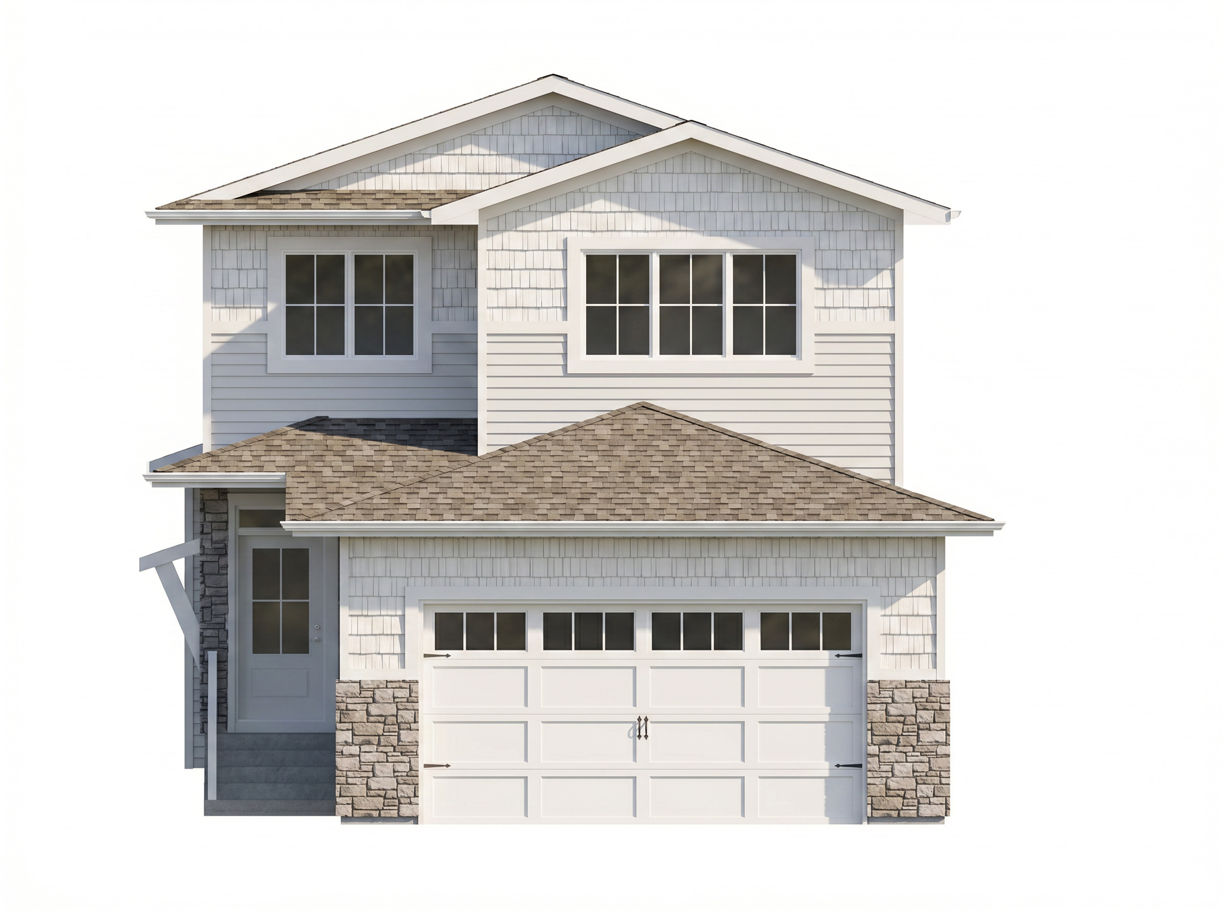 make the shingles iko cambrige dual grey and add front yard landscaping and concrete driveway