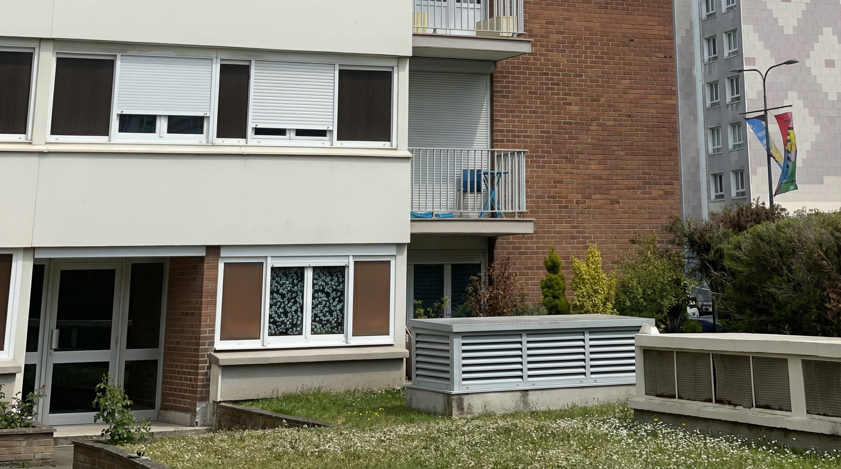 bacround village in front kids playground on right and on the left sitting
