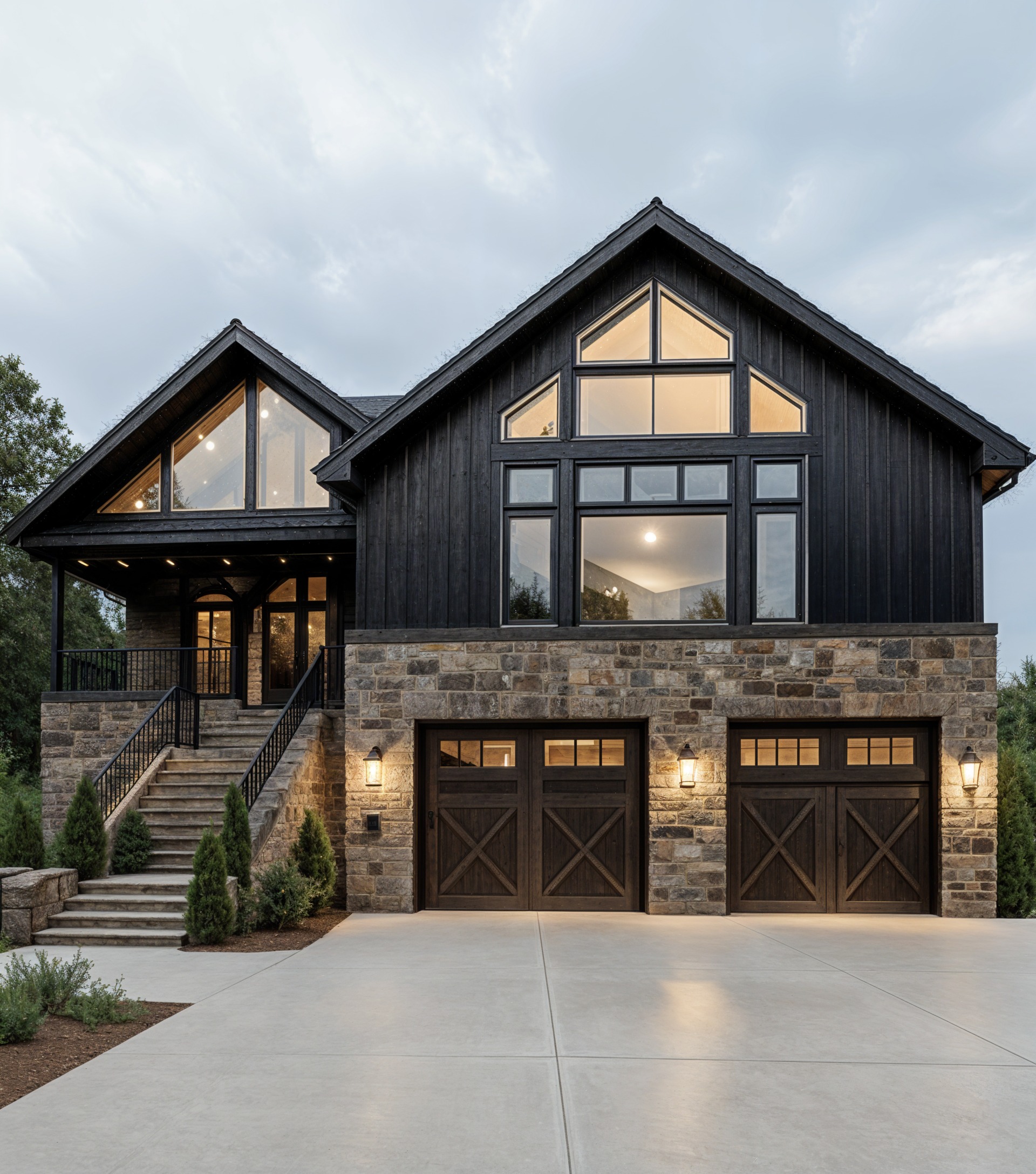change the vertical wood siding to black vertical steel siding