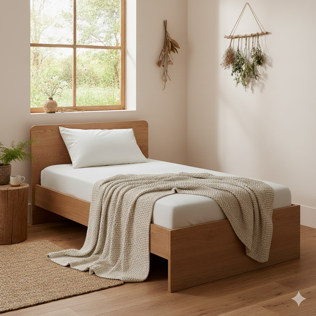 please change the white sheet on the bed to a color code hexa fff1dd everything else should stay the same pillows are white