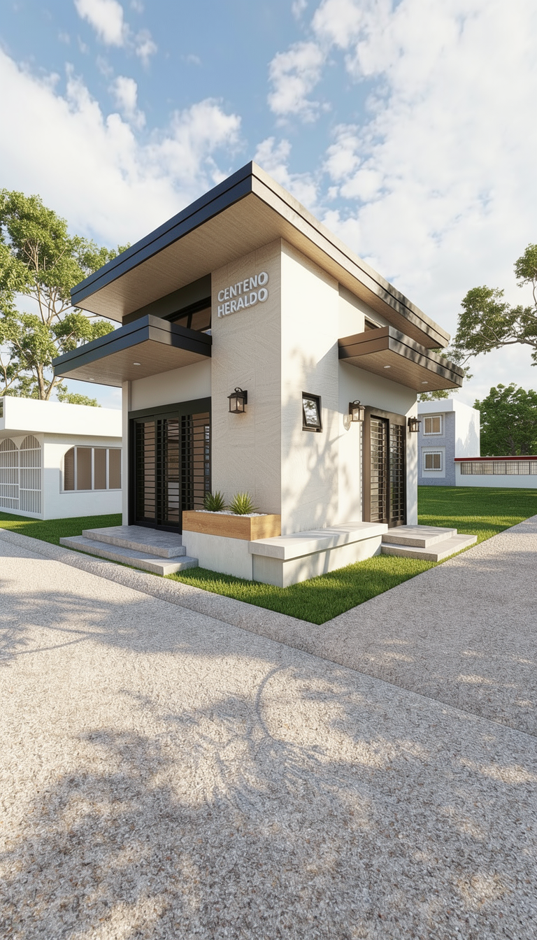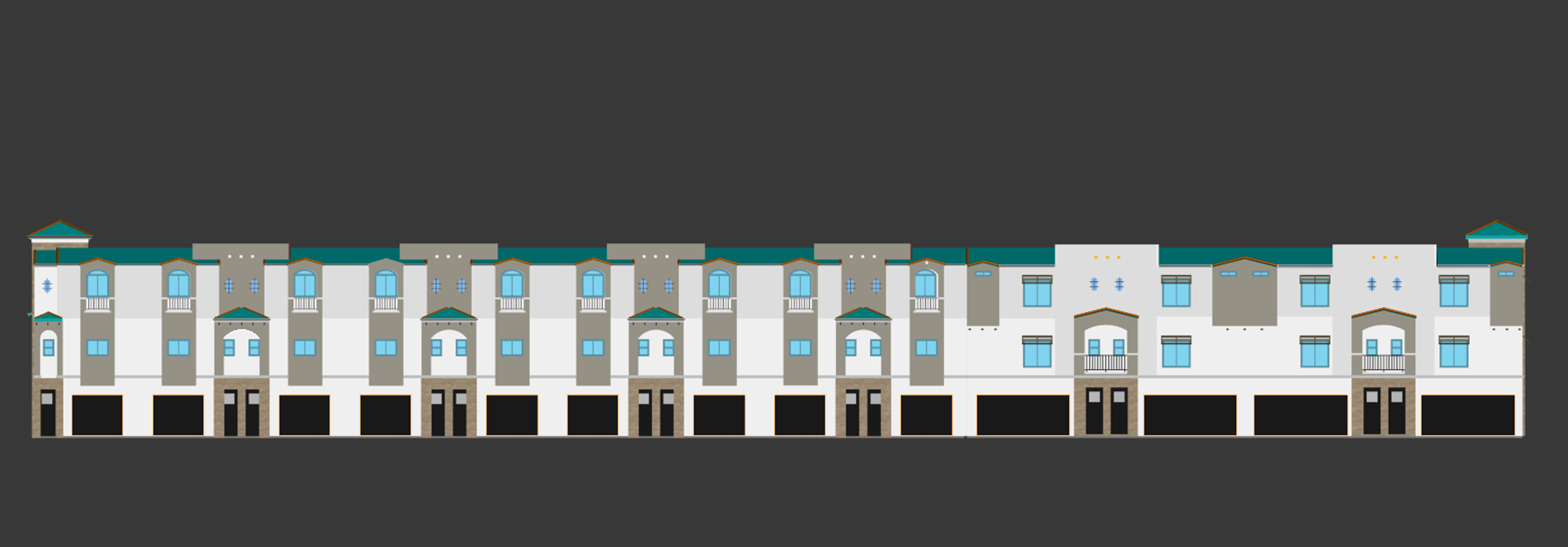 render a photorealistic elevation of this multi family building in apache junction arizona keep model geometry the same including windows doors roof walls balconies architectural element garage door pavement and driveway reference to the current material style are concrete mission s tile eagle roofing capistrano piedmont blend roof stucco wall color sw 7566 westhighland white for main floor and second floor while sw 7634 pediment for accent walls balconies and parapet walls apachestone denton park avenue acme brick on the towers white pvc window frame black metal door with 16 x 16 vision glass 6 x 6 wood viga corbels concrete pavements black metal balcony grills black garage doors do not change the model only enhance the materials detailed textures in the stucco wall and brick wall and a subtle reflections in the glass and a vibrant clear sky with light atmospheric depth render in hyper realistic architectural visualization quality 8k resolution add a realistic textures on the brick stucco wall 6 x6 wood viga corbels roof and concrete pavement include subtle shadows cast by the surrounding trees and buildings background tree behind the building that are native to apache junction arizona